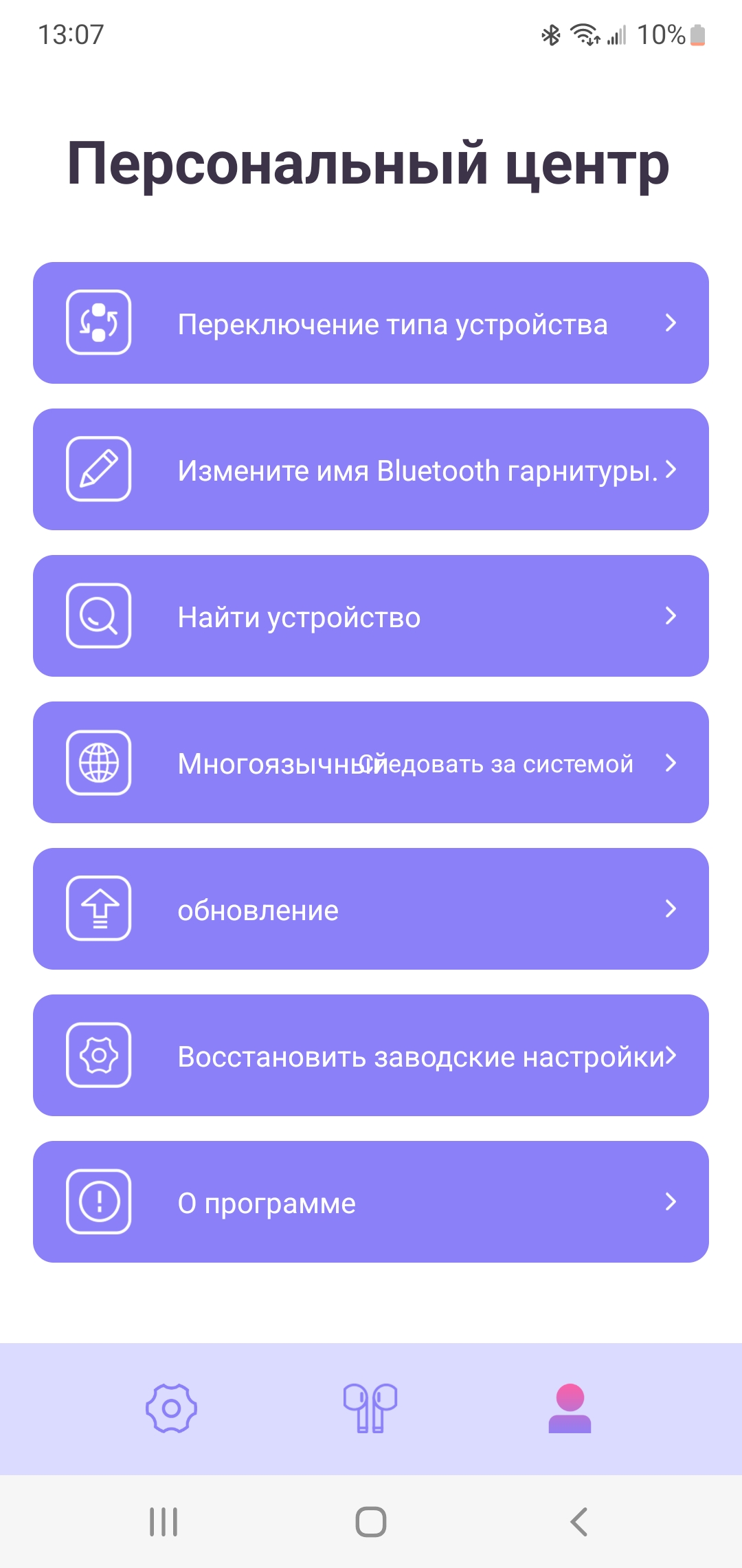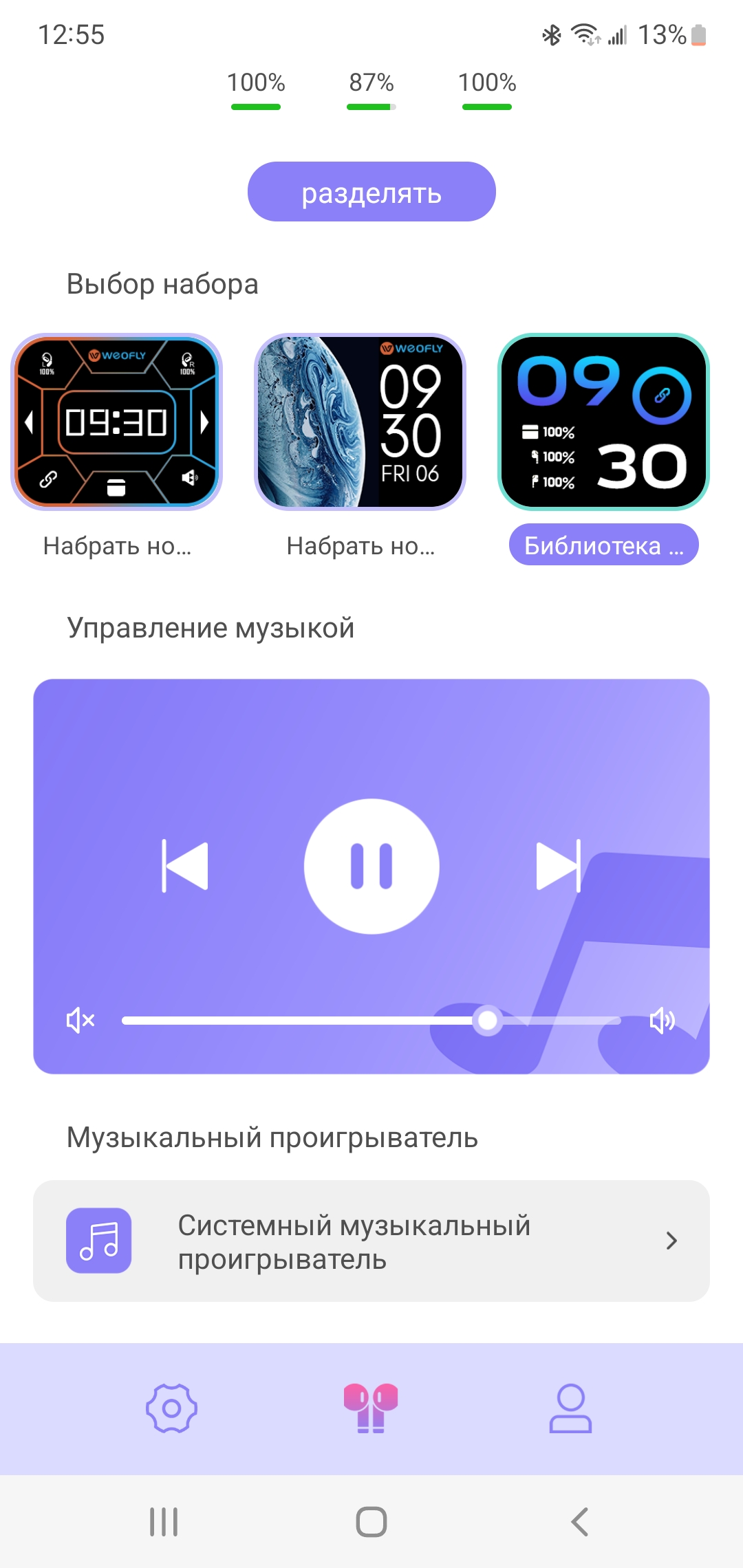 Здесь же можно управлять воспроизведением, переназначить управление наушников и выбрать один из нескольких пресетов эквалайзера. Т. е приложение полностью дублирует функции кейса.