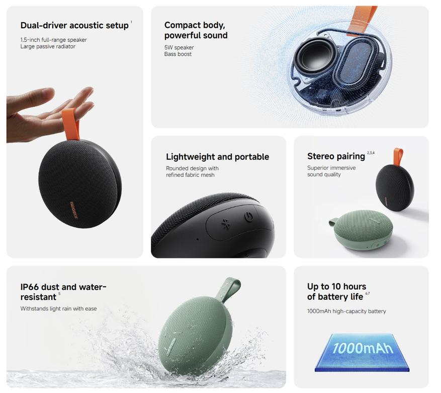 Колонка поддерживает функцию мультисопряжения: до 10 устройств могут воспроизводить звук синхронно, а два экземпляра можно объединить в стереопару по технологии TWS. Корпус оснащён креплением, позволяющим зафиксировать колонку на сумке или рюкзаке. Устройство доступно в двух цветовых вариантах. Точные сроки начала продаж и стоимость Xiaomi пока не объявила.