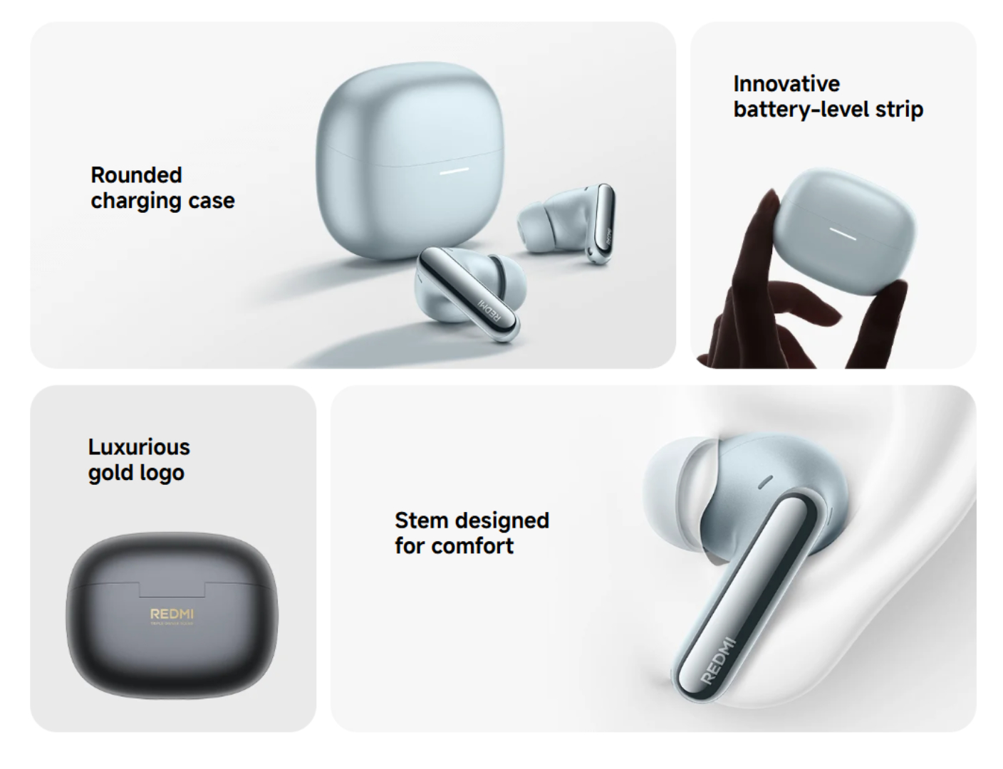 Redmi Buds 8 Pro пришли на замену модели Redmi Buds 6 Pro. Новинка оснащена гибридной системой активного шумоподавления с заявленным уровнем до 52 дБ и двойной драйверной конфигурацией, включающей динамический излучатель диаметром 11 мм и планарный драйвер 10,8 мм. Наушники поддерживают кодек LDAC и имеют степень защиты IP54. Общее время автономной работы с учётом зарядного кейса достигает 43 часов. Модель доступна в трёх цветовых вариантах: Cloud White, Glacier Blue и Obsidian Black.