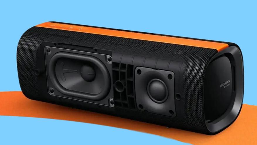 Колонка оснащена двумя динамиками: один высокочастотный мощностью 15 Вт и другой низкочастотный мощностью 35 Вт. Режим усиления басов обеспечивает воспроизведение низких частот. Акустическая система настроена с использованием технологии Harman AudioEFX.