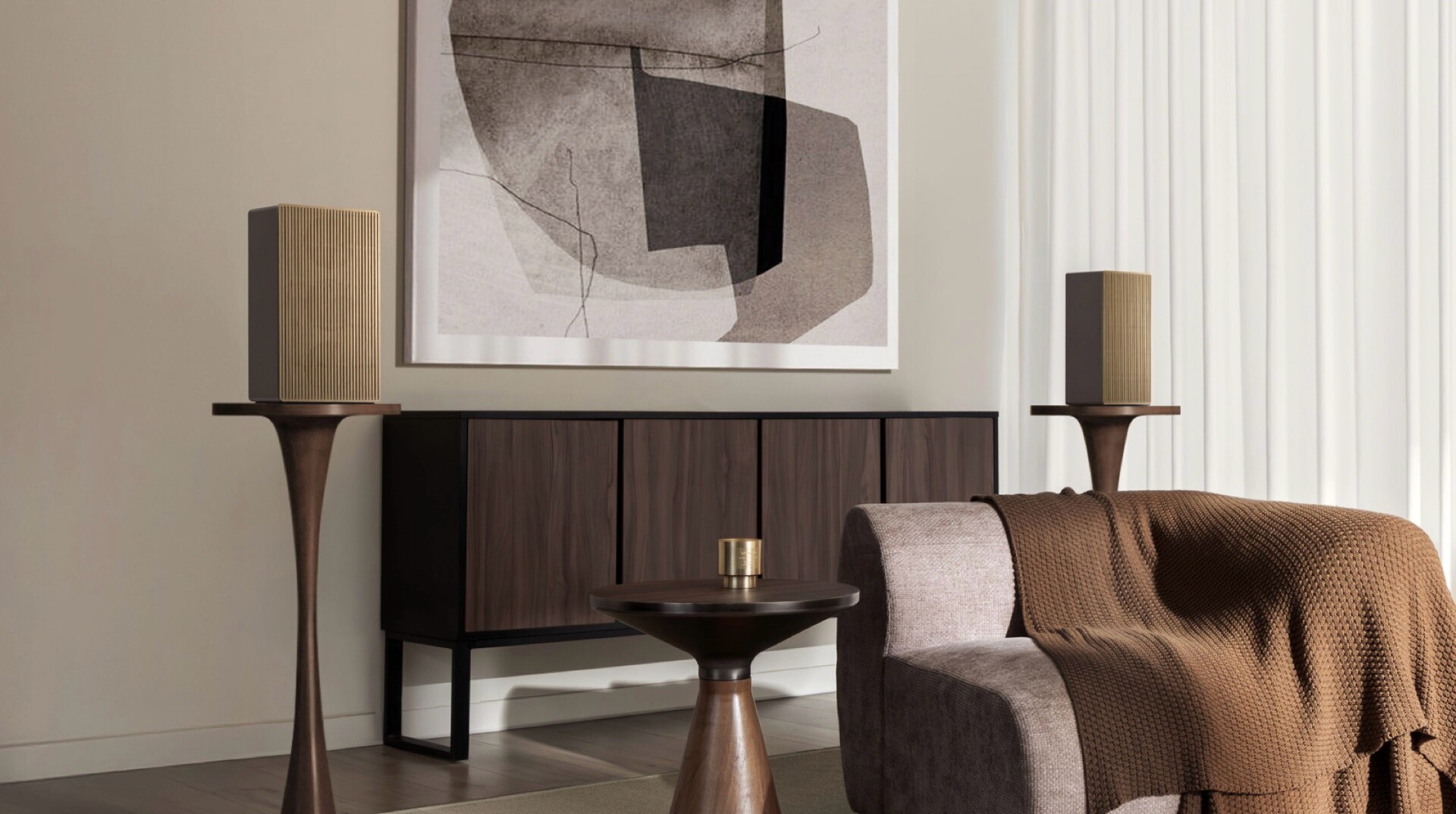 Акустическая система включает четыре динамика с индивидуальными усилителями. Конфигурация состоит из двух 4-дюймовых низкочастотных динамиков мощностью по 30 Вт каждый, среднечастотного динамика с 30-ваттным усилителем и твитера с 10-ваттным усилителем. Среднечастотный динамик и твитер объединены в коаксиальную конструкцию. Суммарная выходная мощность составляет 100 Вт.