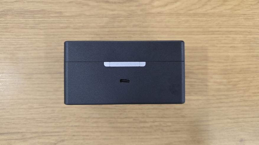 Особого внимания заслуживает зарядный кейс. Его корпус выполнен из такого же черного пластика, который сочетается с дизайном остальных элементов системы. Кейс имеет строгие формы и приятную текстуру.