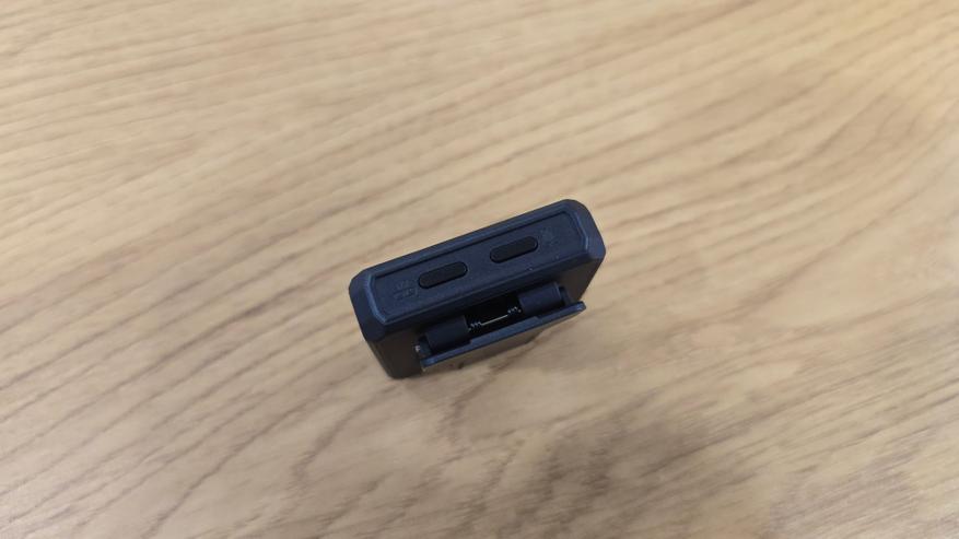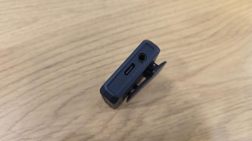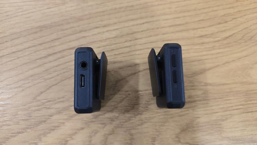 На боковой грани части корпуса находятся ключевые разъемы: USB-C для зарядки или соединения с устройствами и 3.5-мм аудиоразъем для вывода звука. Также боковые грани приемника, как и у передатчиков, оснащены кнопками управления. Здесь можно настроить параметры работы или быстро переключиться на другой режим.