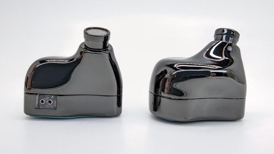 Полностью металлические корпуса, металлические цветные вставки на фейсплейтах и металлические звуководы. 2-pin разъемы подключения кабеля вровень с корпусом. На боковой грани прикрытое сеточкой компенсационное отверстие и переключатель профилей звука с положениями 1 и ON. Габариты корпуса: длина — 24,5 мм, ширина — 18,7 мм, толщина — 15 мм, высота вместе со звуководами — 22,3 мм. Толщина звуковода на бортике для удержания амбушюр — 6,4 мм. Каждый наушник весит 7,3 гр.