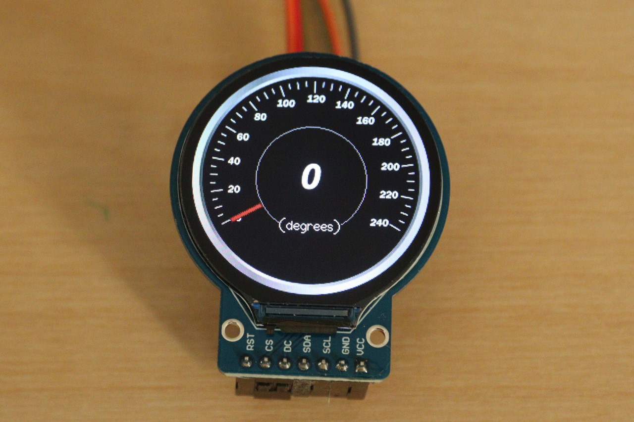 А дальше ищем в меню примеров TFT_eSPI -> sprite -> animated dial, загружаем в ESP32 и получаем вот такой классный циферблатик: