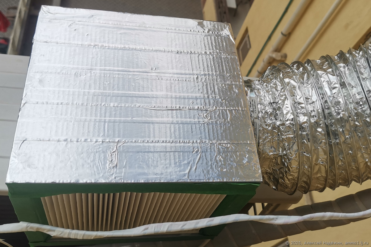 После сборки корпус обклеивается серой армированной липкой лентой — это даёт ему прочность и влагозащиту. Если установка будет работать на улице, корпус желательно обклеить ещё и фольгированной липкой лентой, чтобы он меньше нагревался от солнца.