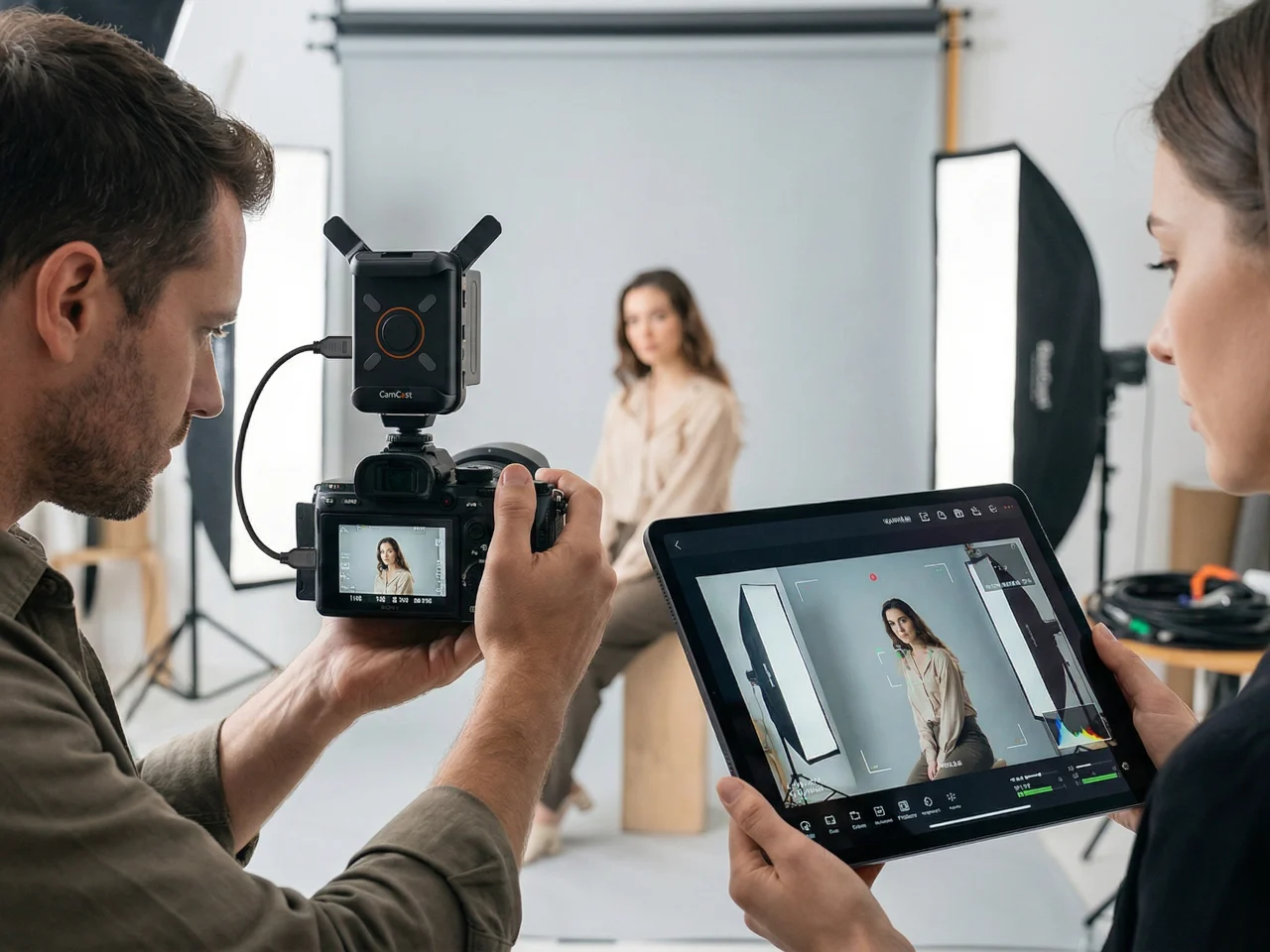 Питание CT-1 получает от аккумулятора формата NP-F, распространенного среди производителей кинооборудования, либо через порт USB-C при напряжении 5 В и силе тока 3 А. Помимо трансляции изображения, передатчик оснащен модулем управления камерой по протоколу PTP. С помощью приложения CamCast на телефоне или планшете можно дистанционно менять выдержку, ISO, диафрагму, цветовую температуру и перемещаться по меню камеры.
