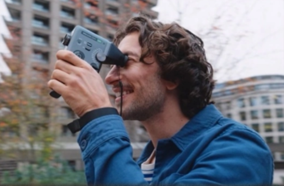 Устройство выполнено в вертикальном форм-факторе, напоминающем классические кинокамеры, что обеспечивает удобный хват. Внешний вид отсылает к аналоговой эпохе, но технически модель полностью цифровая.