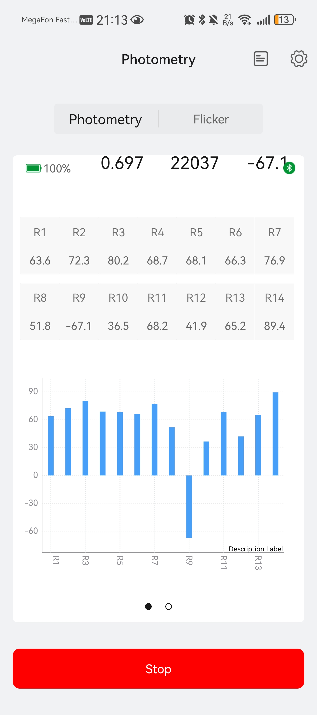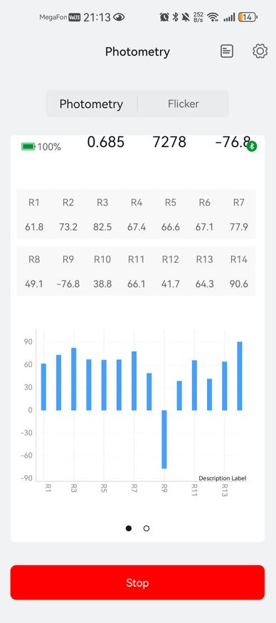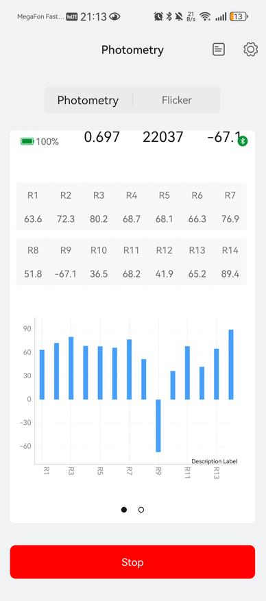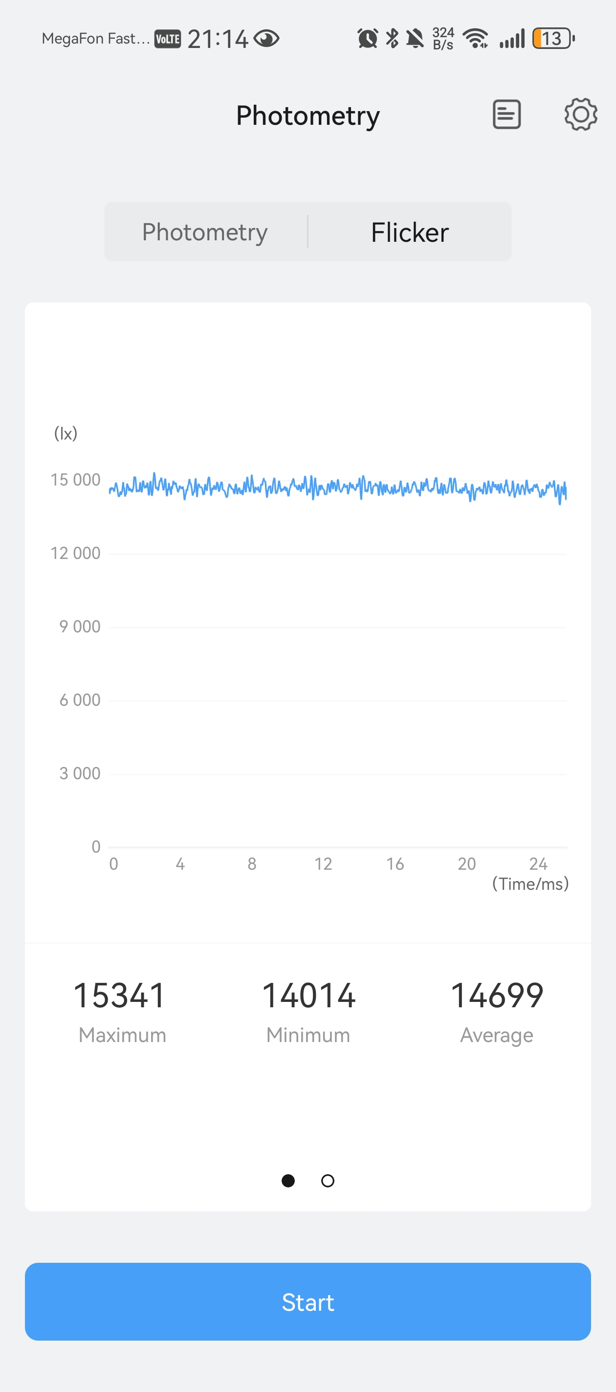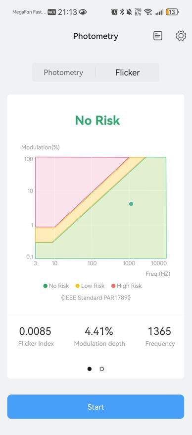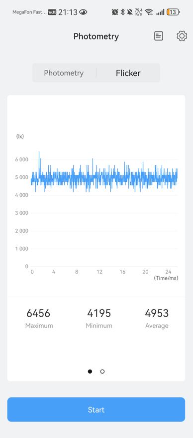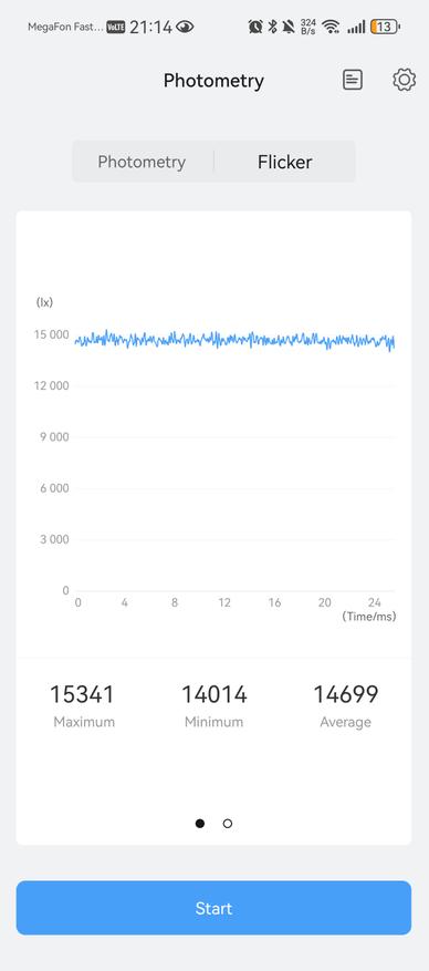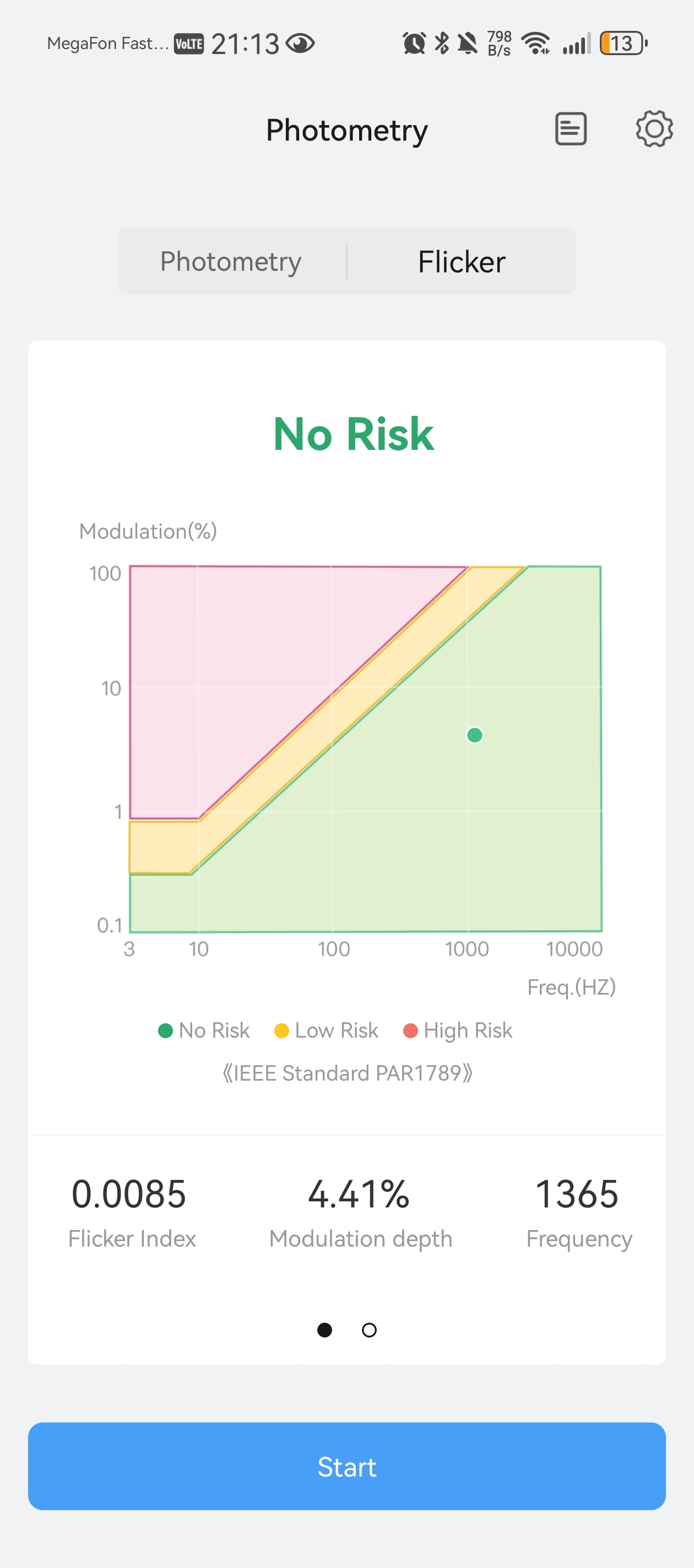 Ниже привел оценки первого (слабого) режима свечения. Оценка делалась при помощи Opple Light Meter 4. Освещенность оценена в 5000Лк, цветовая температура — 7000К в первом режиме.