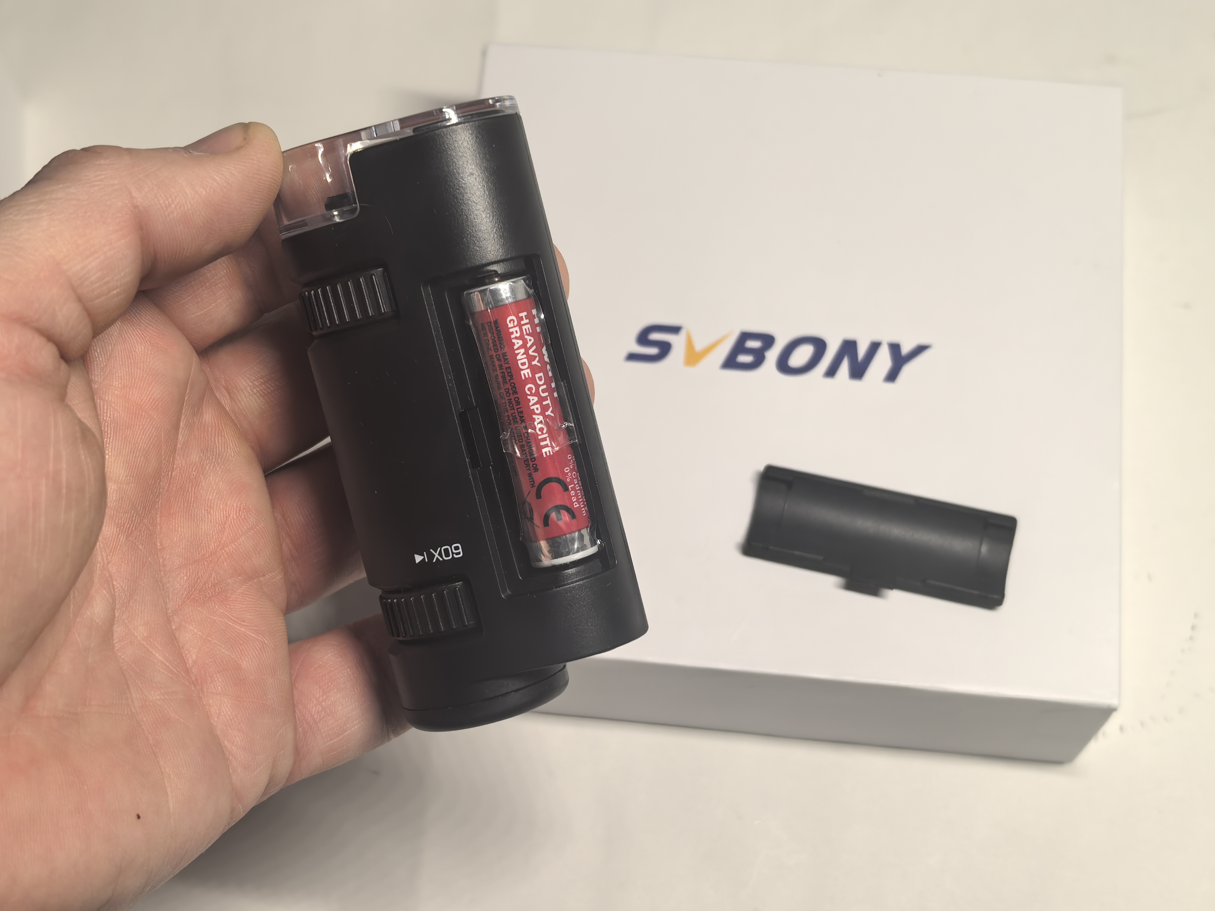 Карманный микроскоп Svbony SV603 небольшого размера. В характеристиках заявлено увеличение до 120х. Из недостатков — это игрушка, так как заявленное увеличение вряд ли соответствует реальному и на объектах есть хроматические аберрации. Даже с имеющимися увидеть можно все в деталях.