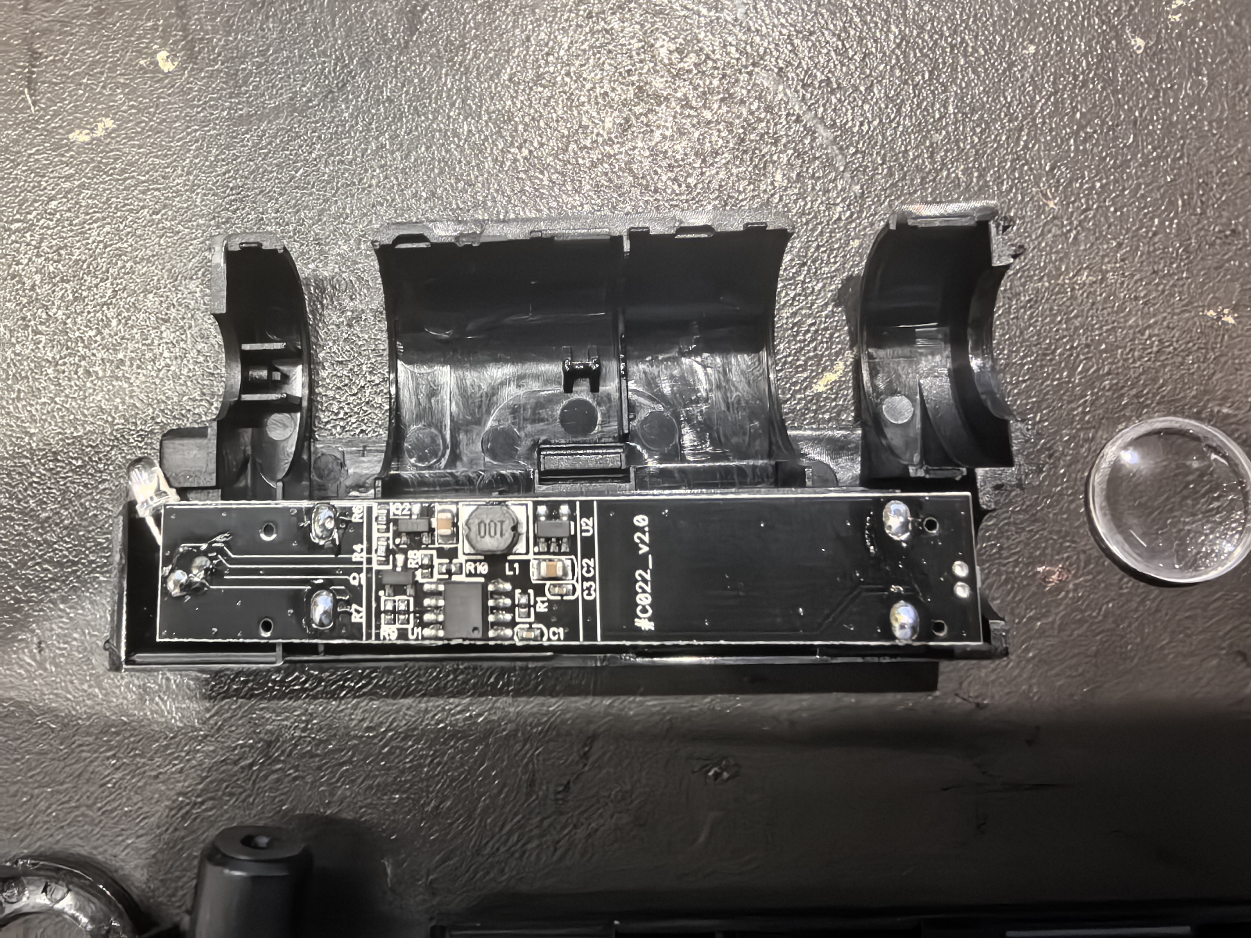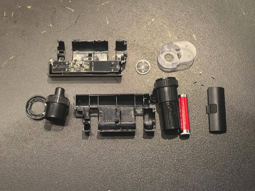 На фотографии показал разобранный SV603. Он состоит из платы, двух линз и корпуса. Корпус держится на защёлках и четырех шурупах.