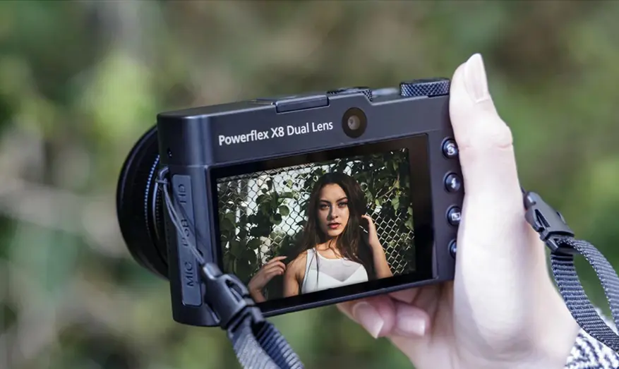 Немецкий производитель оптики Rollei выпустил новую компактную камеру Powerflex X8 Dual Lens, оснащенную инновационным решением для съемки селфи. Вместо традиционного поворотного экрана камера получила второй объектив, расположенный над основным дисплеем.