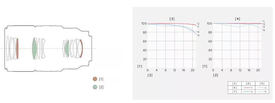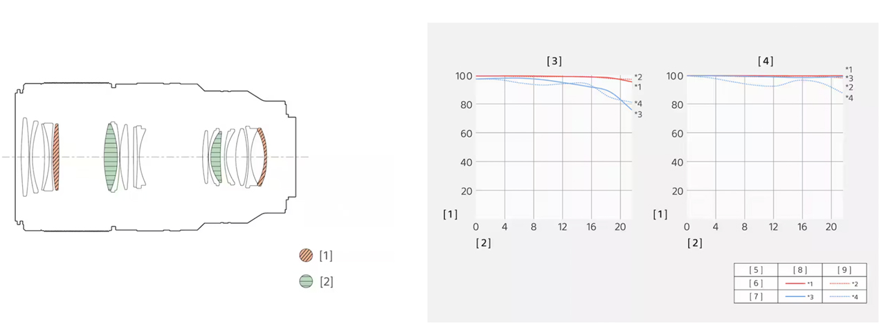 Оптическая схема включает 17 элементов в 13 группах, среди которых два элемента XA (экстремальные асферические) для минимизации аберраций и два элемента ED (сверхнизкой дисперсии) для уменьшения хроматических искажений. Применена фирменная технология Nano AR Coating II для борьбы с бликами. 11-лепестковая диафрагма обеспечивает естественное боке.