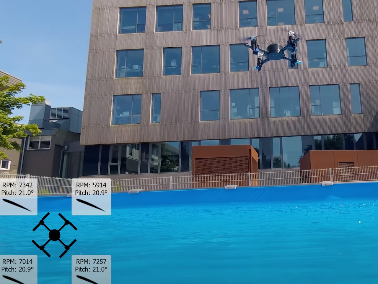 Корпус и компоненты дрона изготовлены с применением технологии 3D-печати, что обеспечило возможность быстрого прототипирования и оптимизации конструкции. Разработчики уделили особое внимание моменту перехода между средами — критической фазе для подобных устройств. Благодаря точной калибровке углов входа в воду, управления скоростью и регулировки тяги, дрон демонстрирует стабильность при пересечении границы сред.