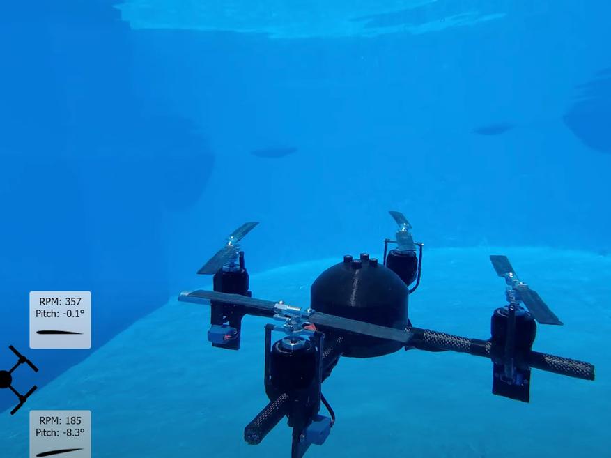 Исследовательская группа под руководством студента Андрея Копачи из Ольборгского университета представила функциональный прототип дрона, способного беспрепятственно перемещаться между воздушной и водной средами. Ключевой инновацией устройства стала система винтов с изменяемым шагом, которая автоматически регулирует угол наклона лопастей в зависимости от среды функционирования.