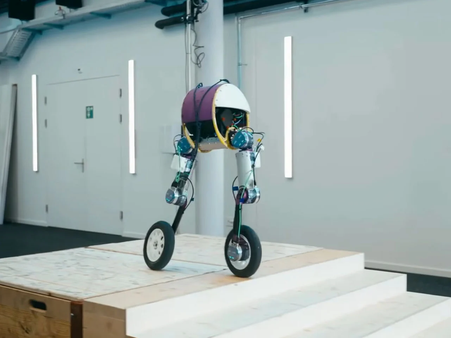 Робот меняет режим в зависимости от того, что встречает на пути. Колёса могут стоять бок о бок или выстраиваться в линию, а ноги с симметричными коленными суставами позволяют шагать и обходить препятствия. Одна и та же система управления обучена работать в обоих вариантах вождения, поэтому переходы получаются плавными и естественными.