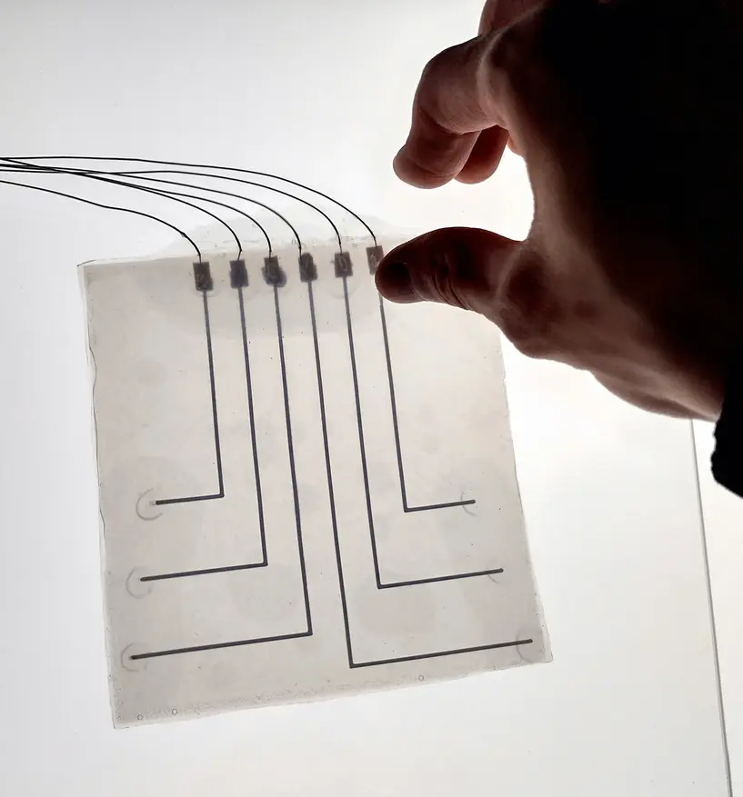 Крыло оснащено электронной оболочкой из гибких проводников на основе жидкого металла, залитых в силикон. Эта оболочка выполняет функцию синтетической нервной системы: фиксирует изменения давления и деформации корпуса при воздействии водных потоков. Сигнал передаётся на внутренние гидравлические трубки, которые в реальном времени меняют жёсткость и геометрию крыла без участия оператора. Принцип работы воспроизводит проприоцепцию — механизм, с помощью которого рыбы и птицы воспринимают положение и движение своих конечностей.