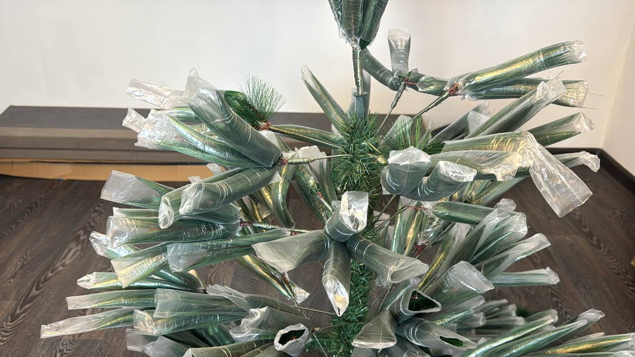Распаковка стала отдельным квестом. Каждый пакет нужно снять, каждую веточку освободить. В итоге собрал ёлку довольно быстро, поставил её на место, а потом просто ходил мимо неё в течение дня и потихоньку снимал пакетики. Их там штук сто! Процесс реально утомительный. «Новый год-то уже прошел, зачем ставить елку?» — говорил мне мозг, и распушение веток, а также высвобождение иголок из пакетов растянулся на весь день.
