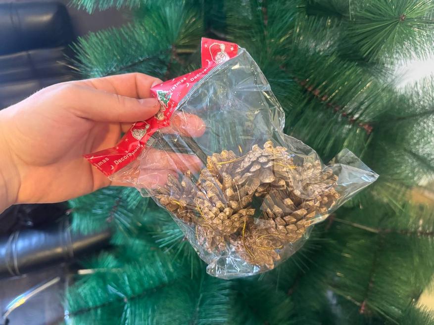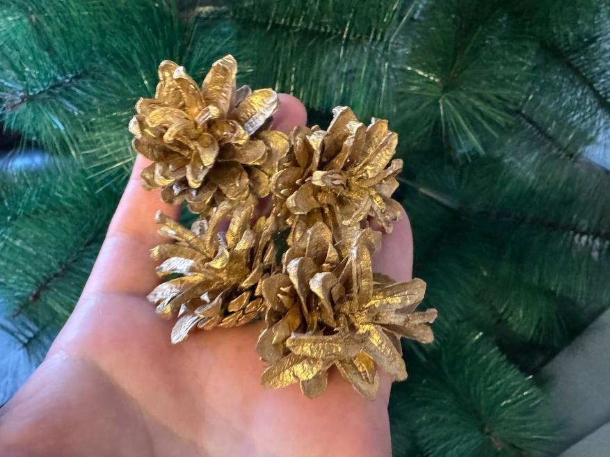 В комплекте были и шишки — настоящие, но покрашенные в золотистый цвет. На рендерах они выглядели немного иначе, более натурально, возможно, и это кому-то не понравилось. Но для меня это вообще не принципиально: при желании их можно не вешать или заменить.