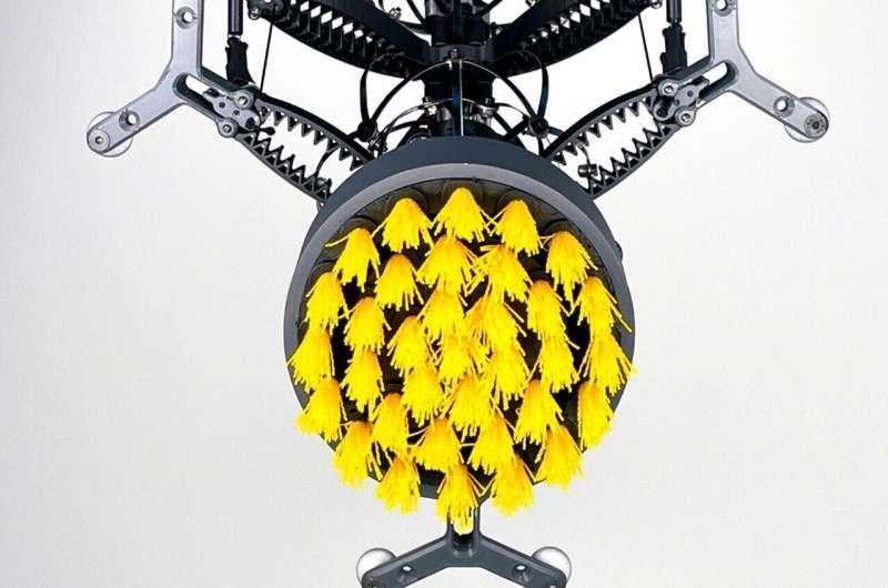 Основу конструкции SCCRUB составляют три ключевых компонента: вращающаяся в противоположных направлениях щетка, контроллер на основе глубокого обучения для планирования движений, и специальные TRUNC-ячейки (универсальные муфты с жесткостью на кручение). Эти ячейки могут сгибаться, растягиваться и изгибаться, одновременно передавая крутящий момент, сопоставимый с ручной дрелью.