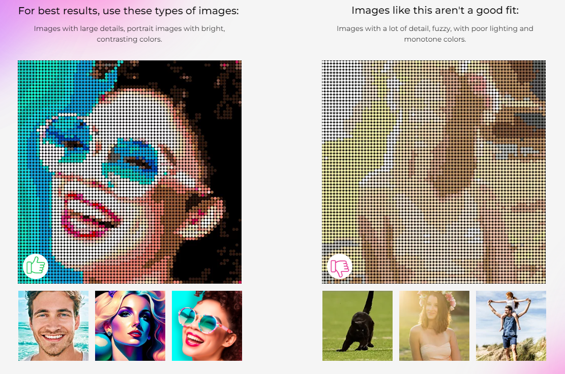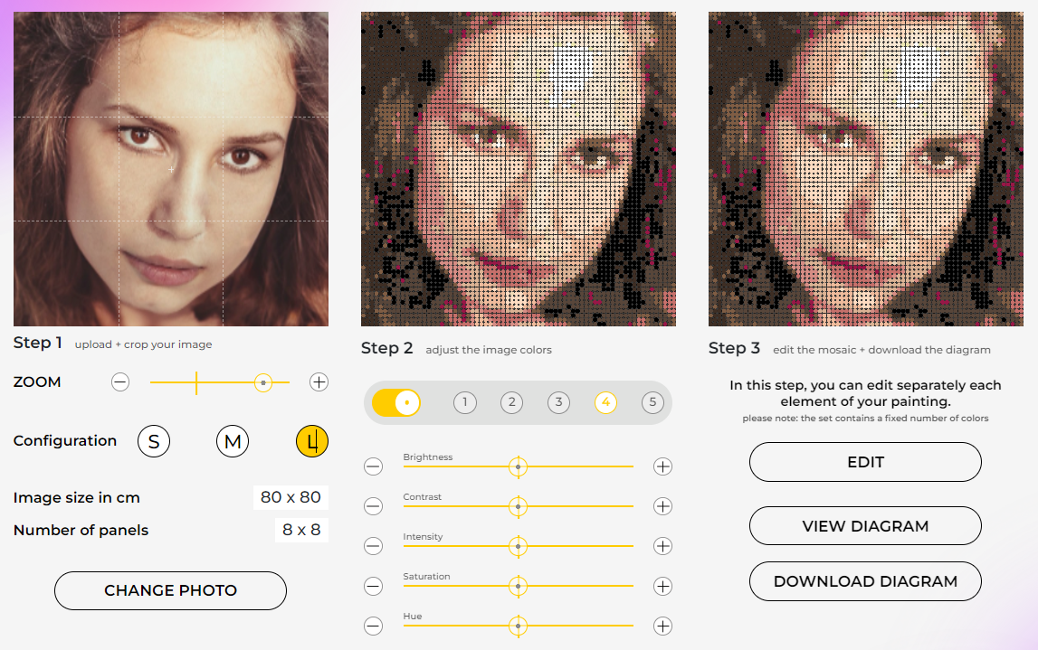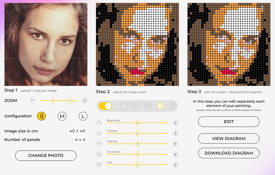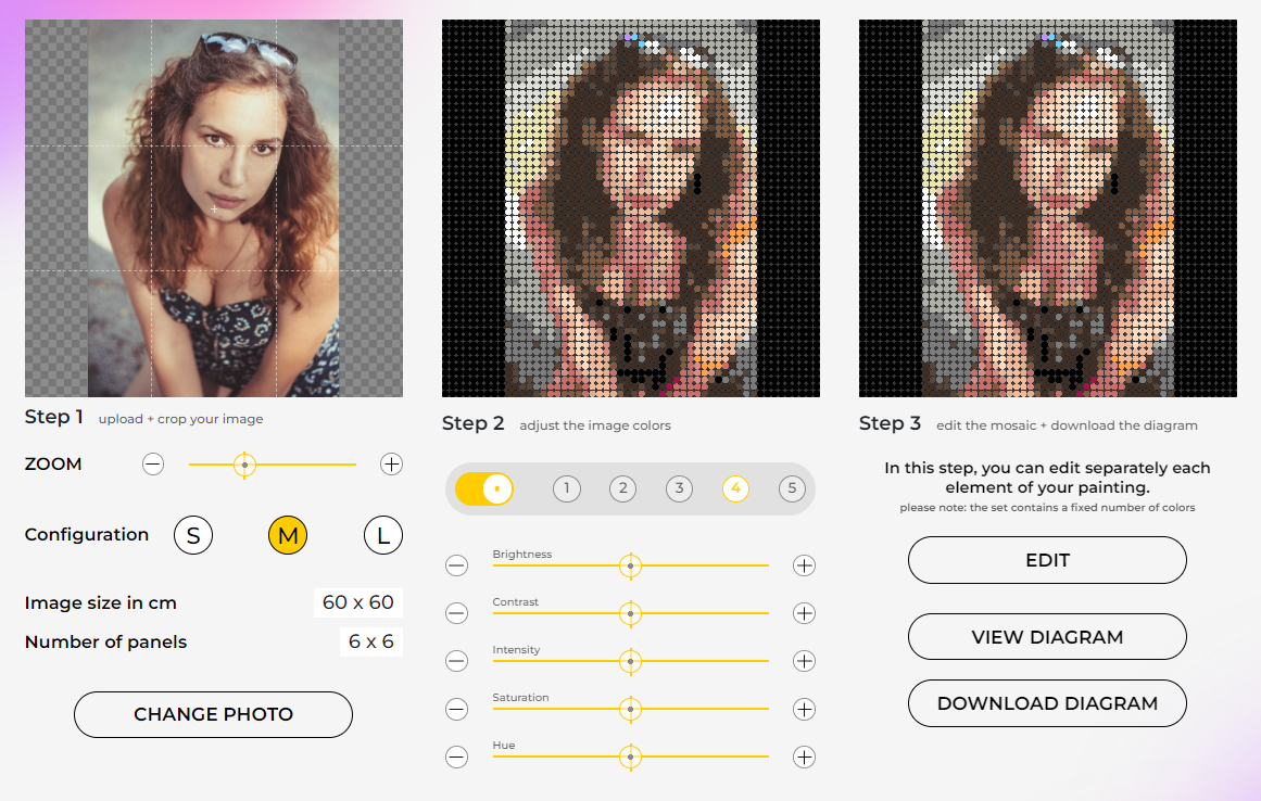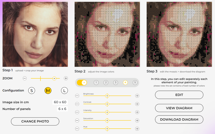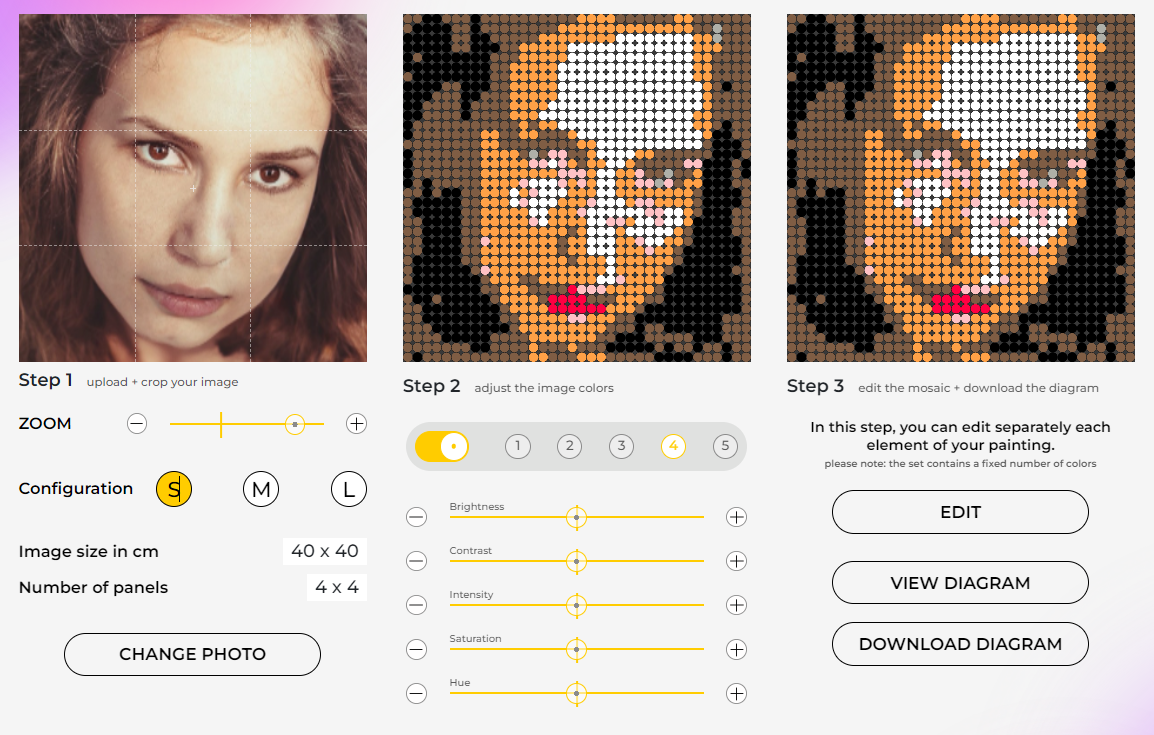 - Выбор размеров конструктора (S, M, L). Для портретов оптимальными размерами будут M или L, тогда как размер S лучше подходит для детских рисунков.