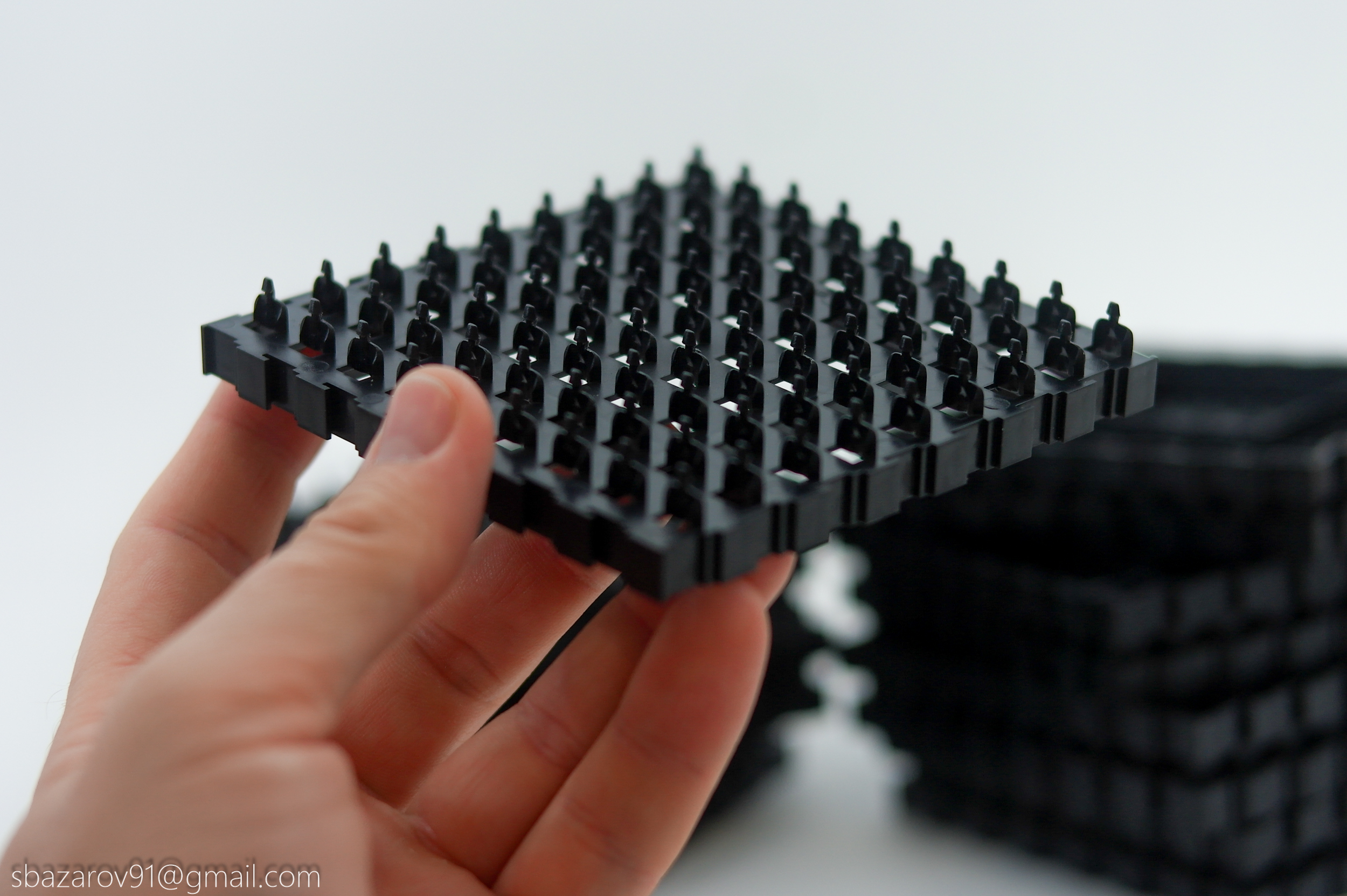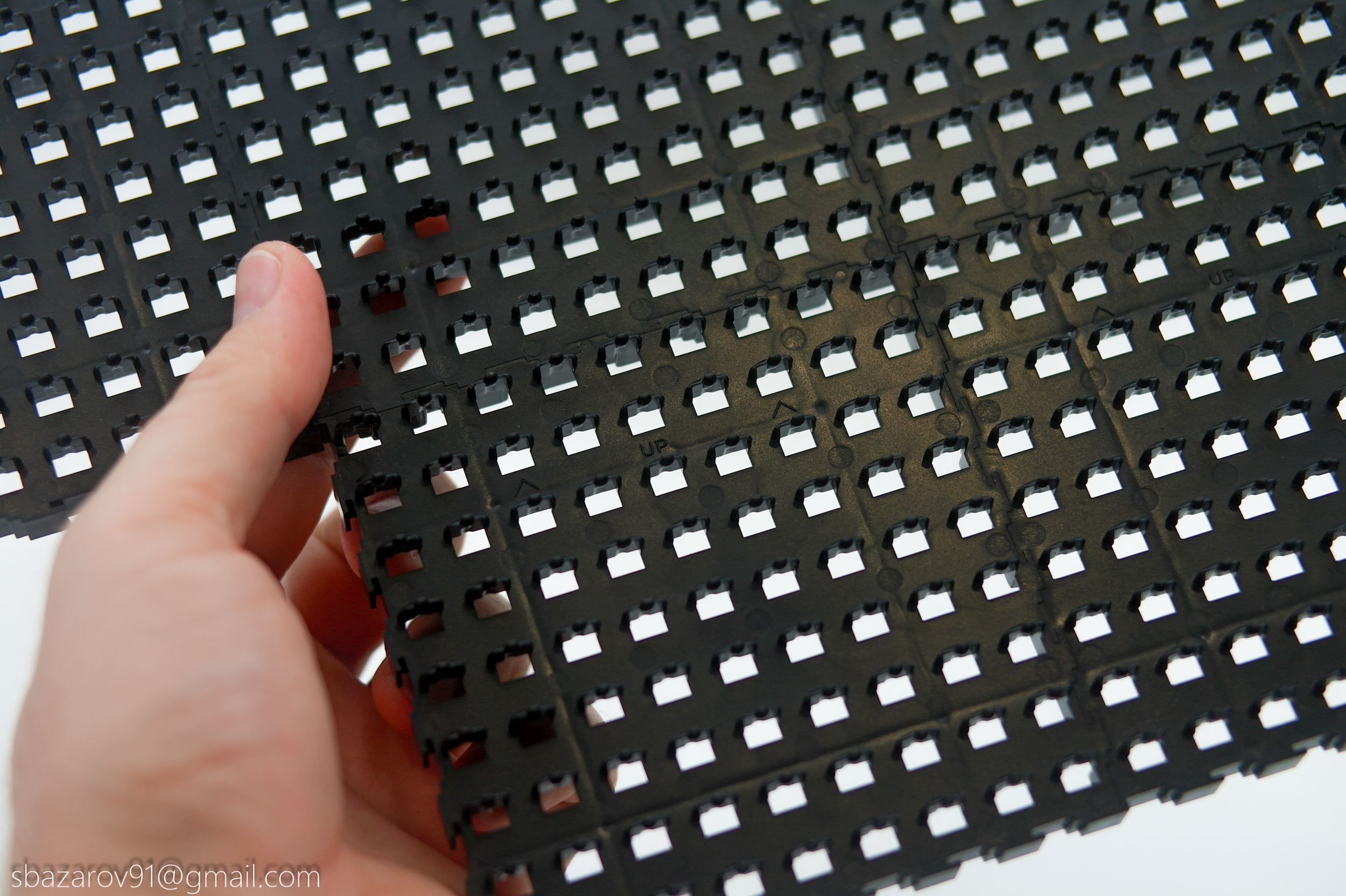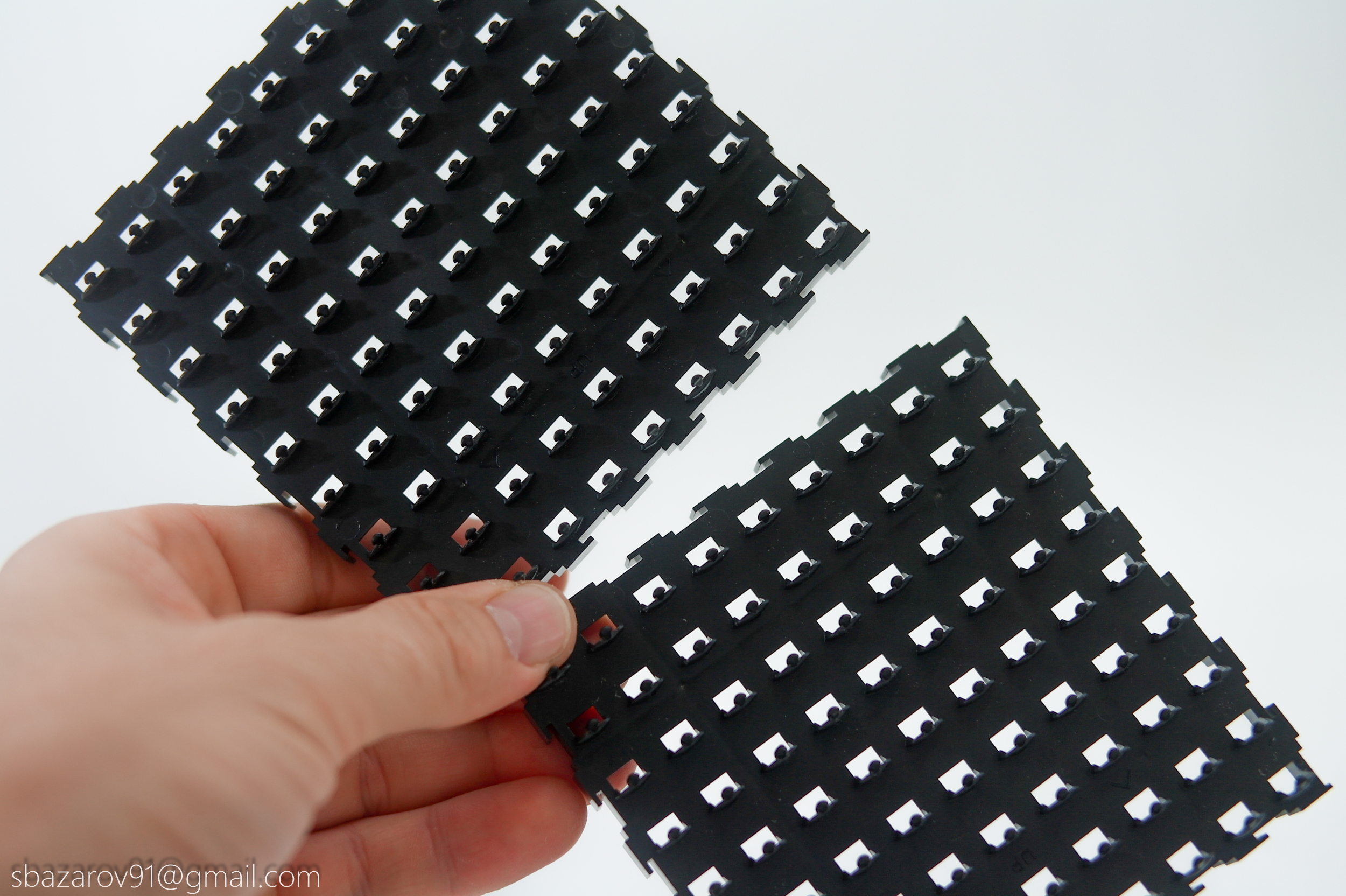Основа картины выполнена из пластиковых «квадратов» с небольшими выступами, на которые одеваются пайетки. Данная конструкция надежно удерживает пайетки на месте, что позволяет не беспокоиться о сохранности картины. Обращайте внимание на правильное направление квадратов, на которых есть надписи «UP» и соответствующие стрелки. Процесс соединения элементов прост и надежен: достаточно совместить их и зафиксировать.