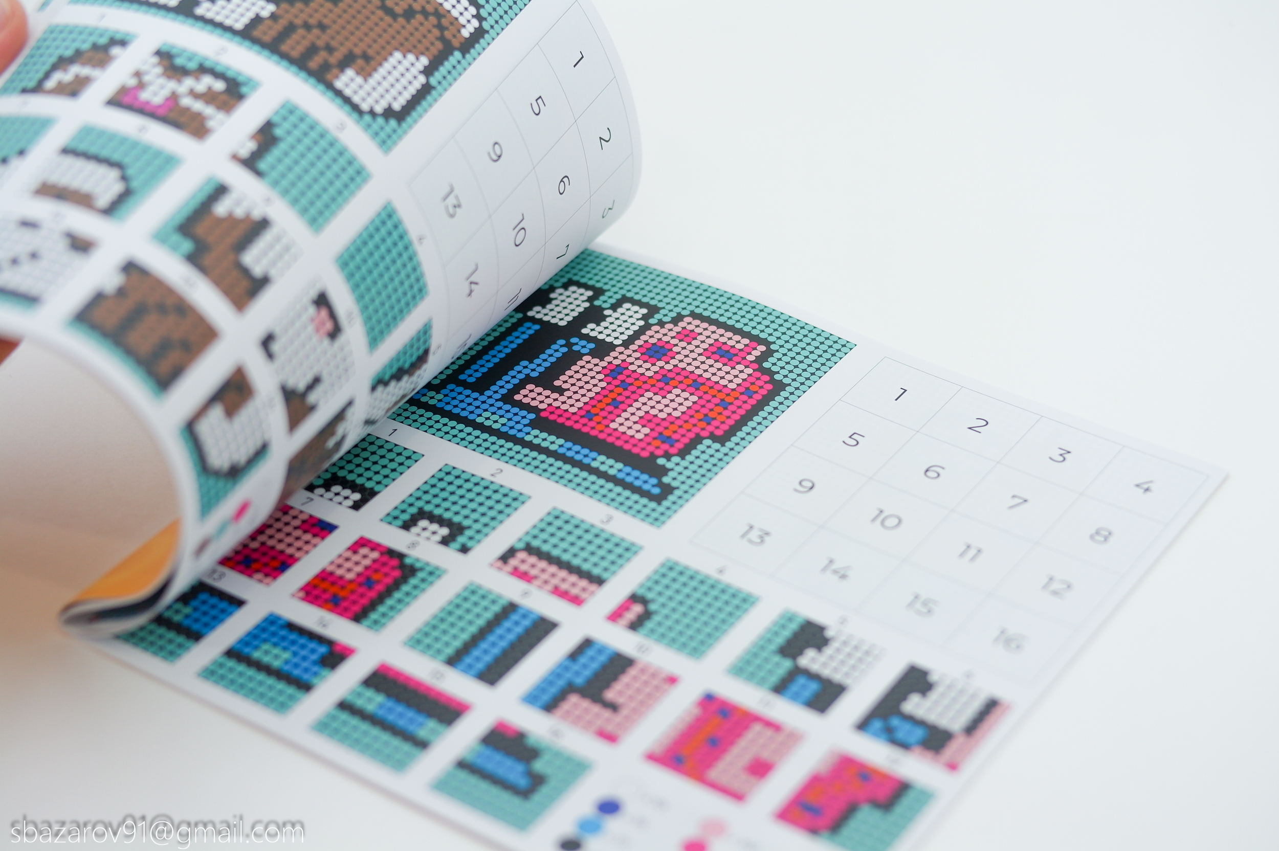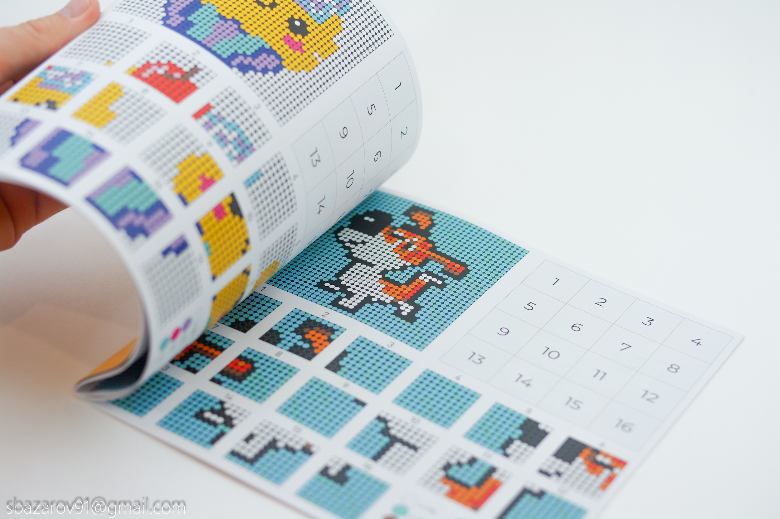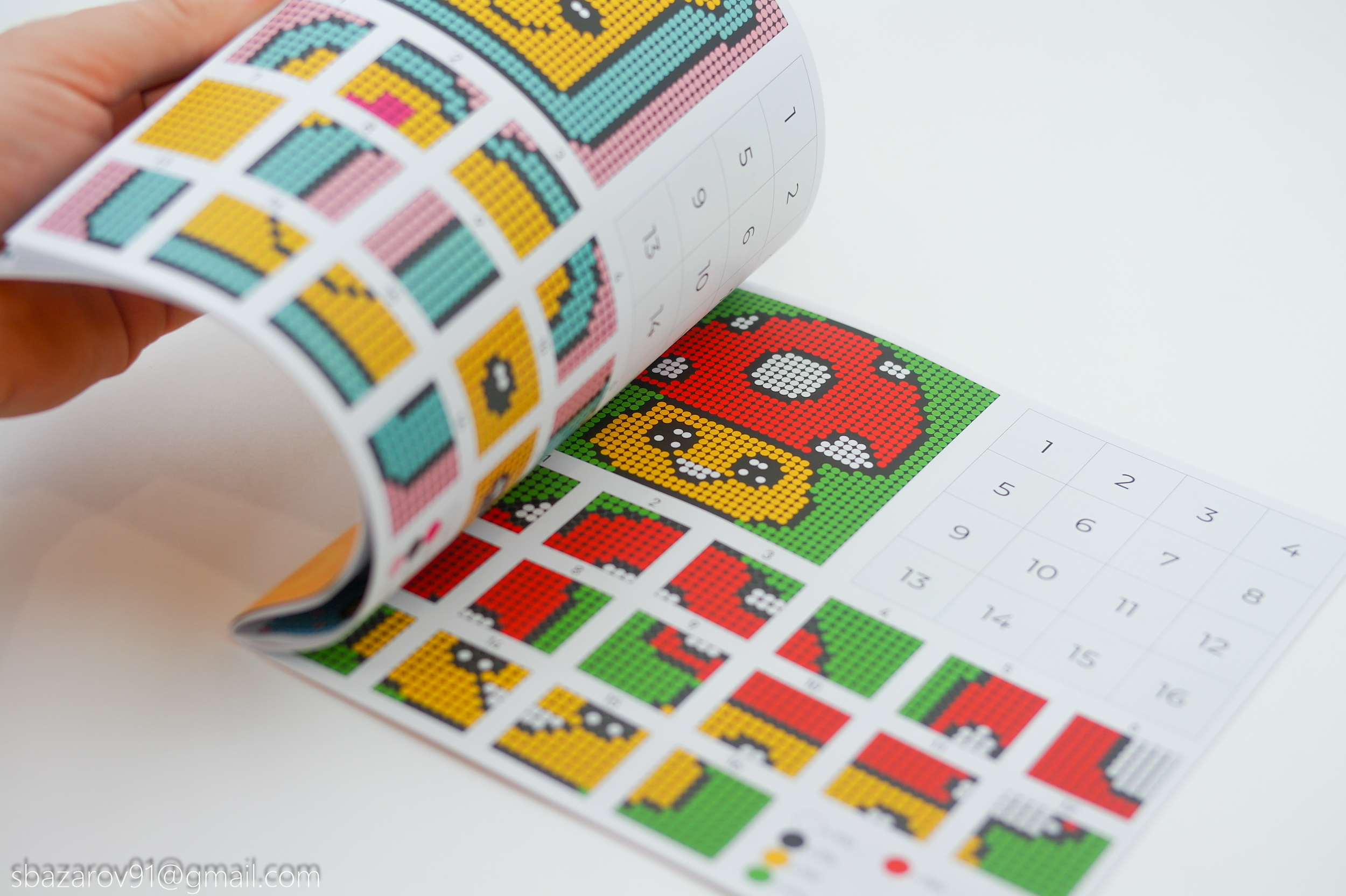 Чтобы познакомиться с работами дизайнеров из Краснодара, в комплекте есть журнал с 36 уникальными изображениями в стиле пиксель-арт. Каждый рисунок разбит на 16 отдельных квадратов, что значительно облегчает процесс сборки и делает его доступным для всех, начиная с 6 лет.