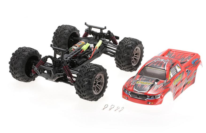 Благодаря мягкой подвеске и большим колесам, RC моделька прекрасно форсирует различные преграды: