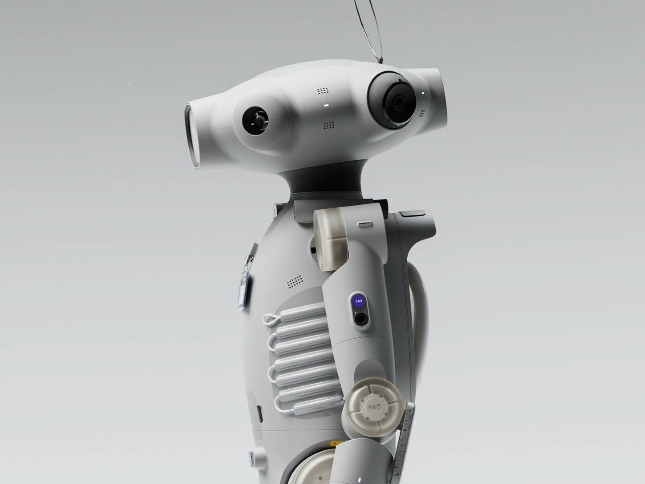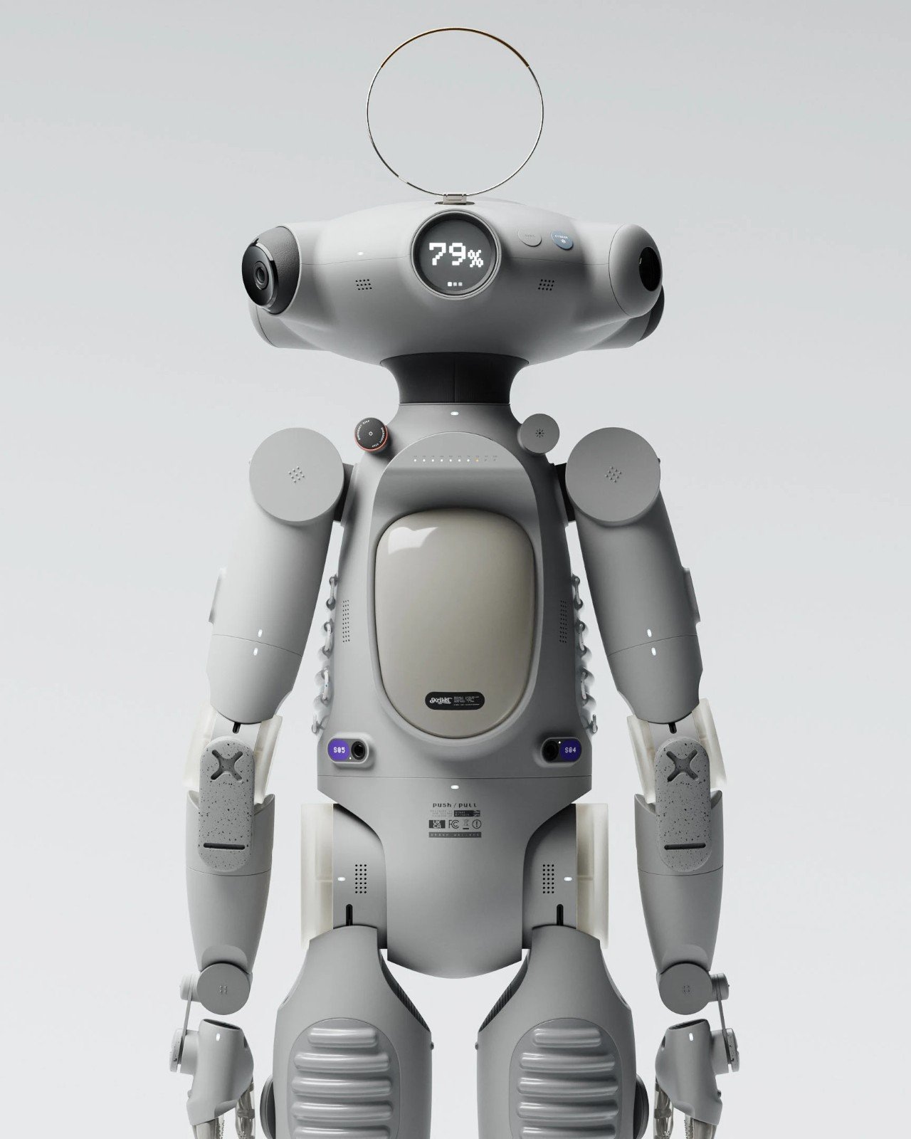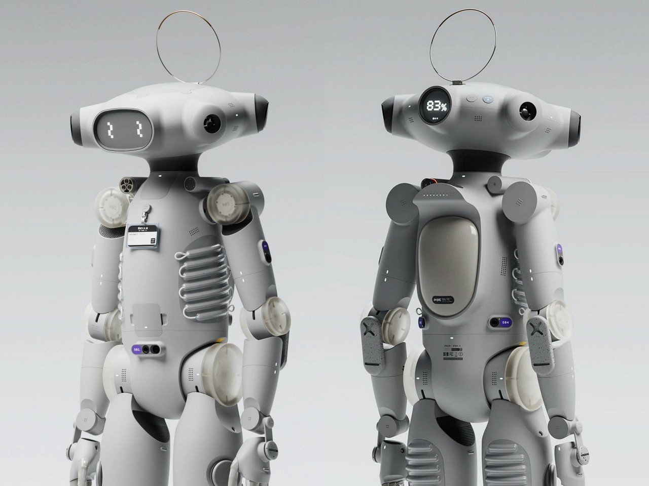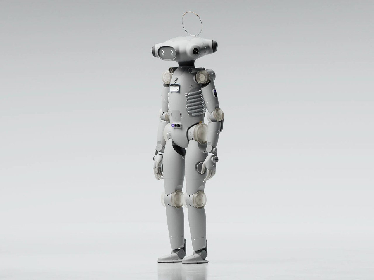 Техническое оснащение робота включает несколько камер, размещенных на непропорционально широкой голове, обеспечивающих круговой обзор на 360 градусов. Корпус оборудован датчиками для определения расстояния и глубины. Конструкция предусматривает суставы в руках и ногах, аккумуляторный рюкзак, искусственные ребра и антенну в форме нимба, придающую роботу «ангельский» вид.