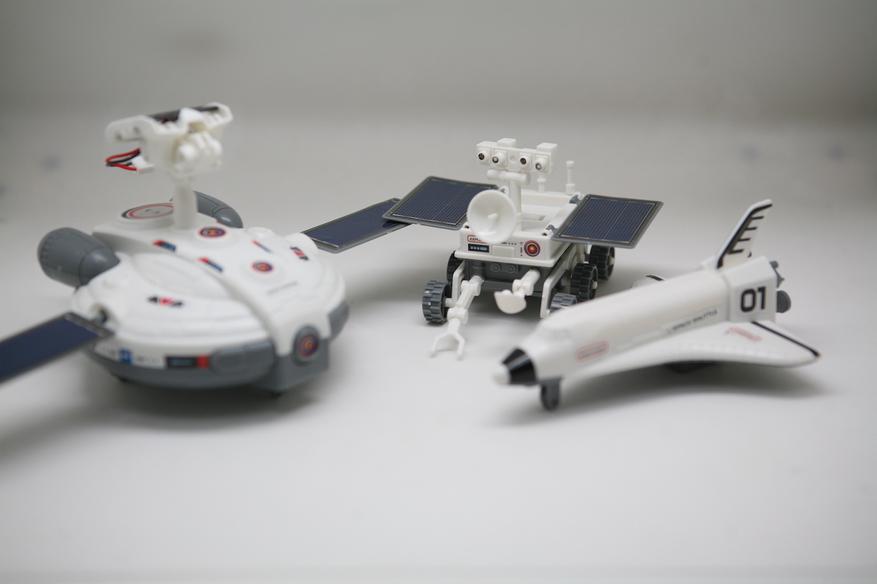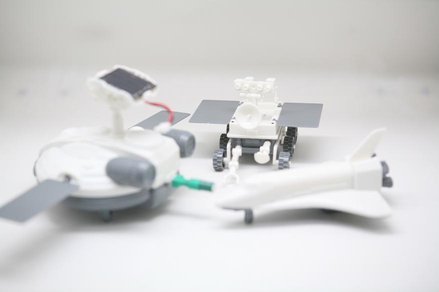 В общих чертах: перед нами китайская модель конструктора, которая позволяет из одной коробки «достать» несколько разных моделей (всего — 3), которые могут быть приведены в движение солнечными лучами.