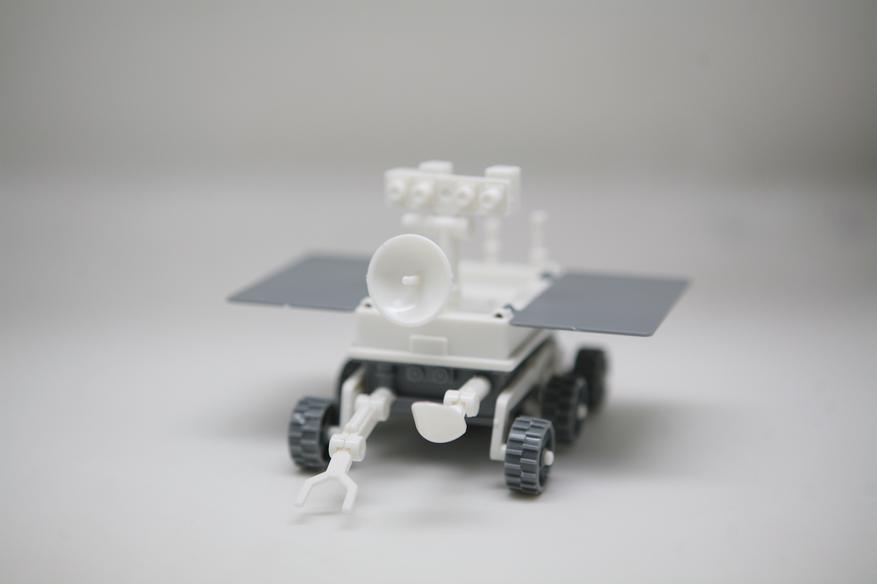 Затем нужно собрать луноход. Он также состоит по большому счету из двух крупных деталей корпуса и нескольких дополнительных: колеса, антеннка, радары...