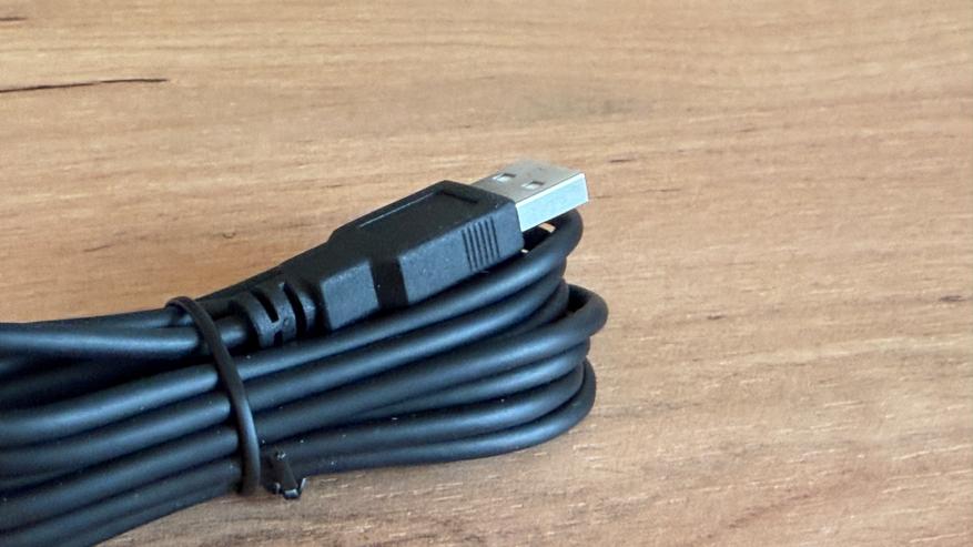 С боков ничего интересного, просто скругленные части корпуса. Кабель USB длиной 2м входит в корпус сзади.