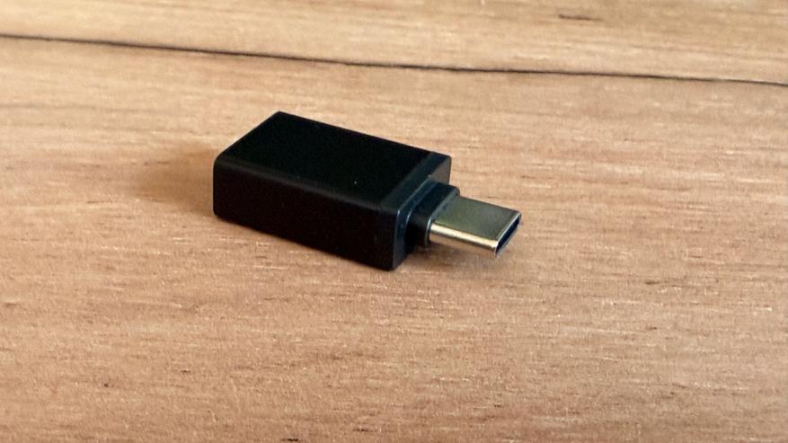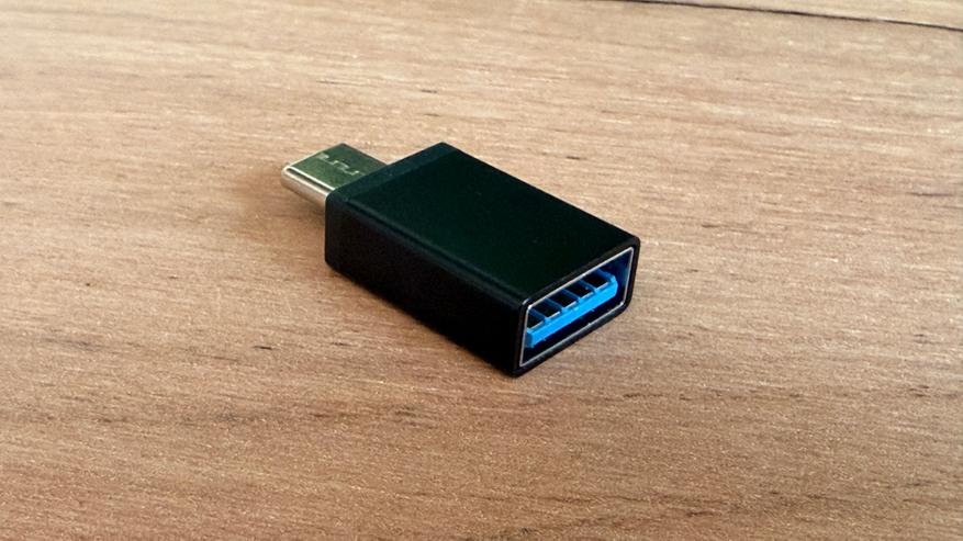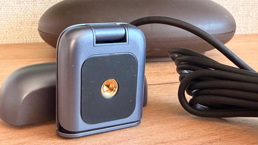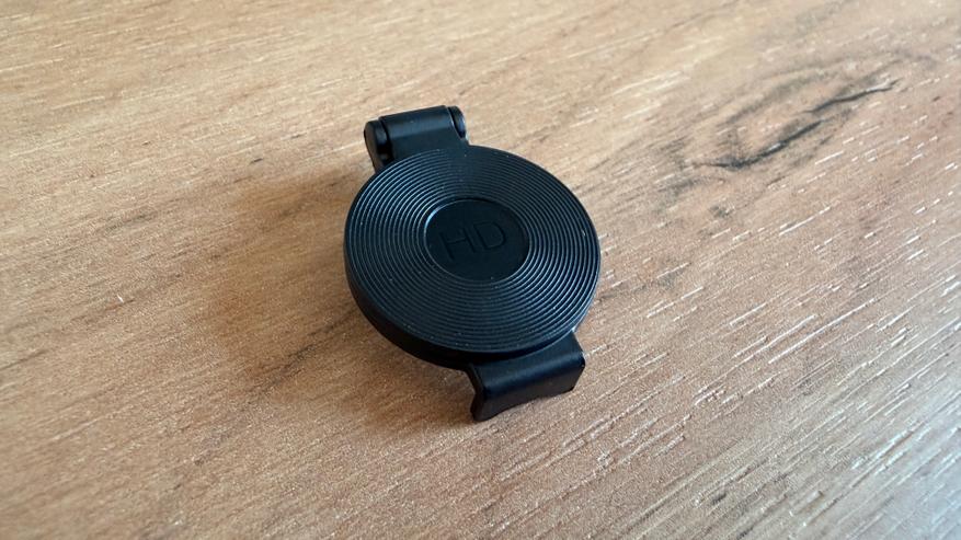 В комплекте крышка, закрывающая камеру, переходник с USB-A на USB-C, документация.