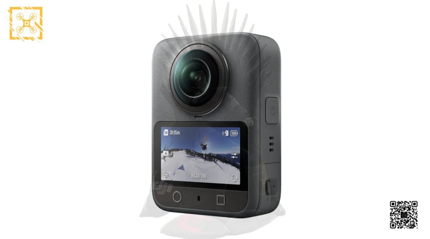Обнародованное изображение демонстрирует низкопрофильную камеру в тёмно-сером корпусе, оснащённую объективом и небольшим горизонтальным экраном. Под дисплеем размещены две аппаратные кнопки, а на боковой панели присутствует элемент, напоминающий кнопку включения. Внешний вид устройства соответствует предыдущим неофициальным рендерам, подчёркивающим его компактность и плоскую конструкцию, что выгодно отличает его от других 360-градусных камер, доступных сегодня на рынке.