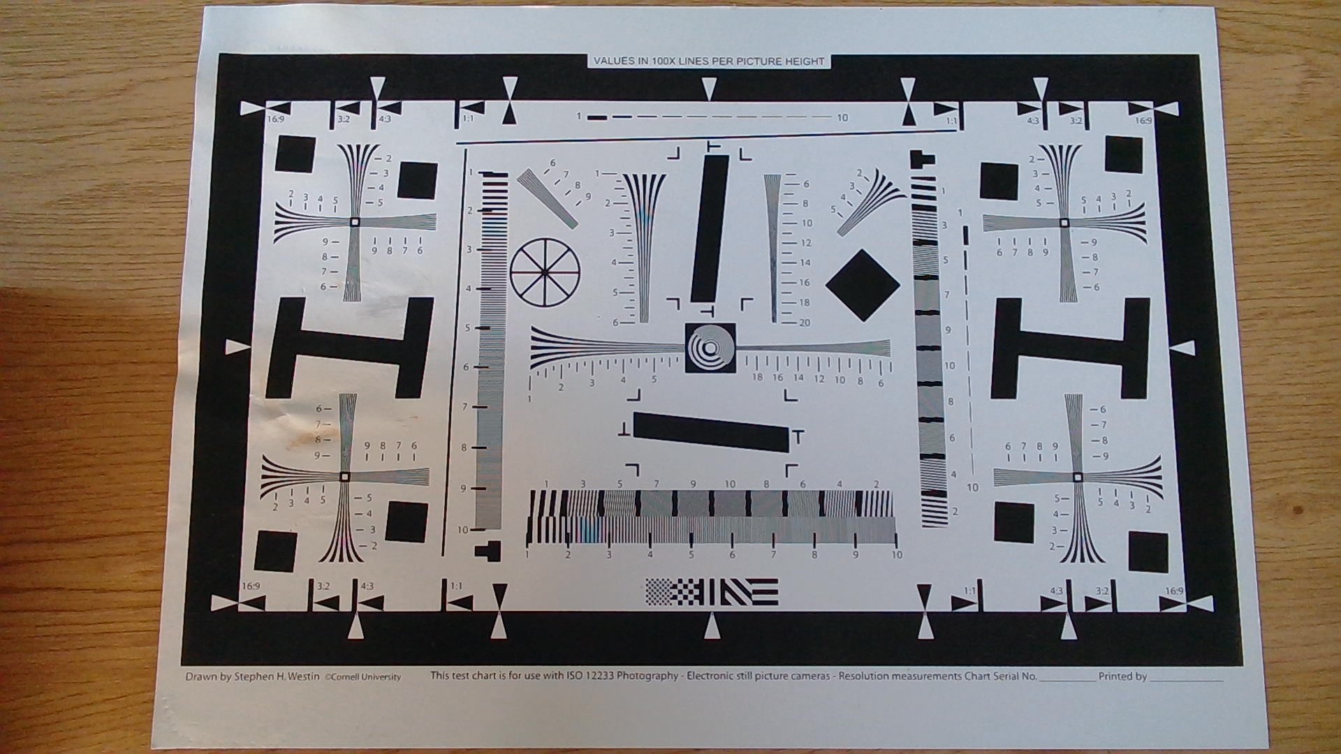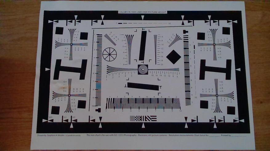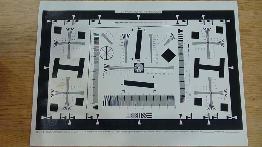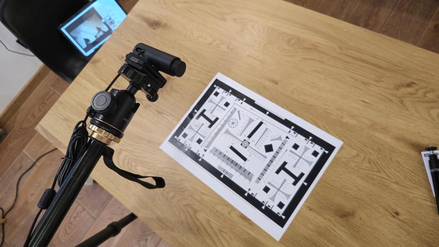 Фотография, сделанная при искусственном освещении, показывает стабильную работу камеры в условиях низкой освещенности. Камера сохраняет высокую детализацию и контрастность, что видно на тестовой таблице. Цветопередача остается на высоком уровне, а баланс белого корректируется автоматически, обеспечивая естественные тона изображения. Однако, как и в других условиях низкой освещенности, присутствуют небольшие шумы, которые, хотя и незначительны, все же заметны.