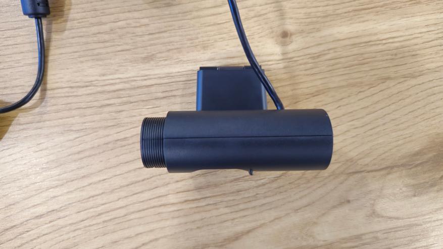 Задняя сторона камеры также гладкая, здесь расположен провод для подключения устройства к компьютеру или другому устройству. Длина кабеля составляет 2 метра.