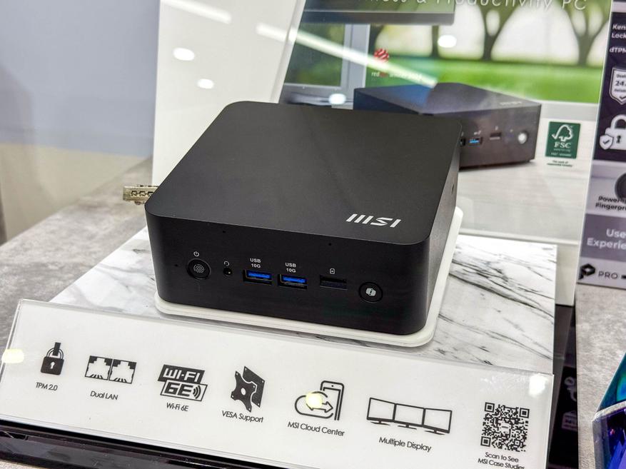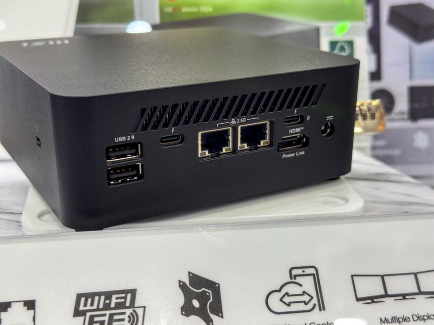 Самым маленьким экспонатом оказался мини-ПК NUC Cubi AI+ 2MG объёмом всего 826 мл. Внутри установлен процессор Intel Core Ultra 7 258V и до 32 ГБ оперативной памяти.