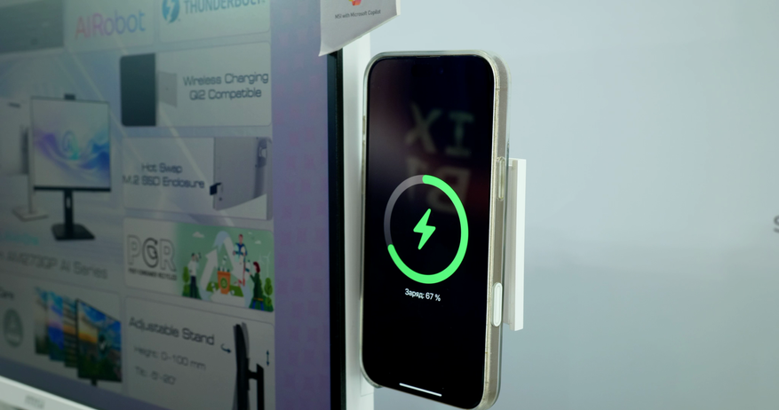 А сбоку размещена площадка для беспроводной зарядки смартфона.