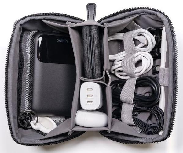 Среди аксессуаров представлен водостойкий органайзер для гаджетов из переработанного нейлона.