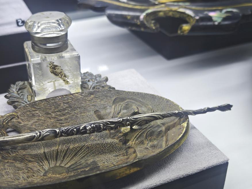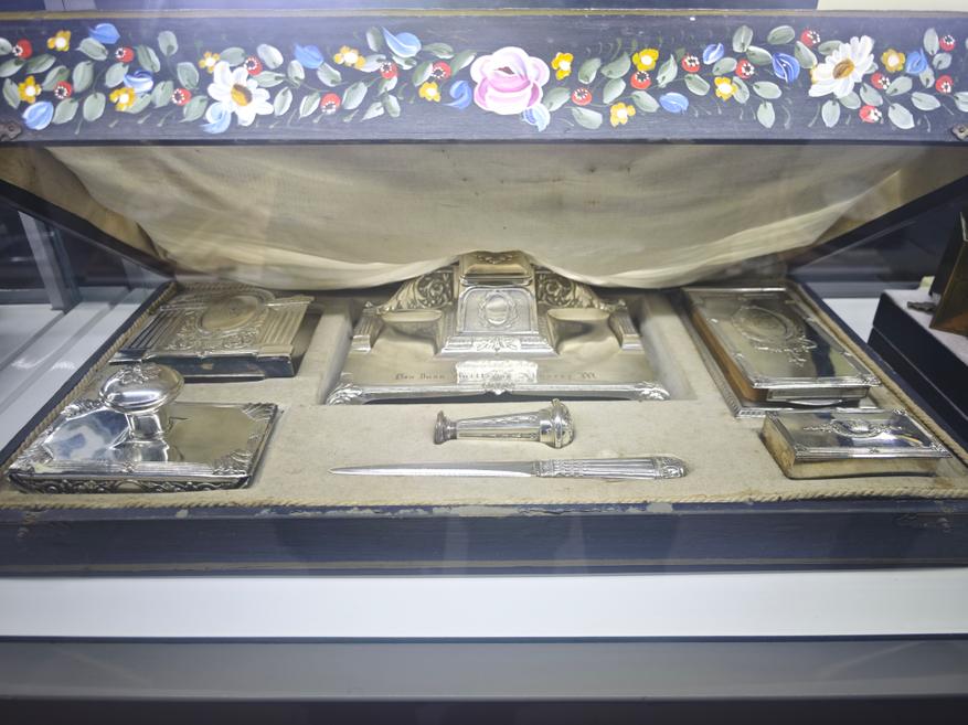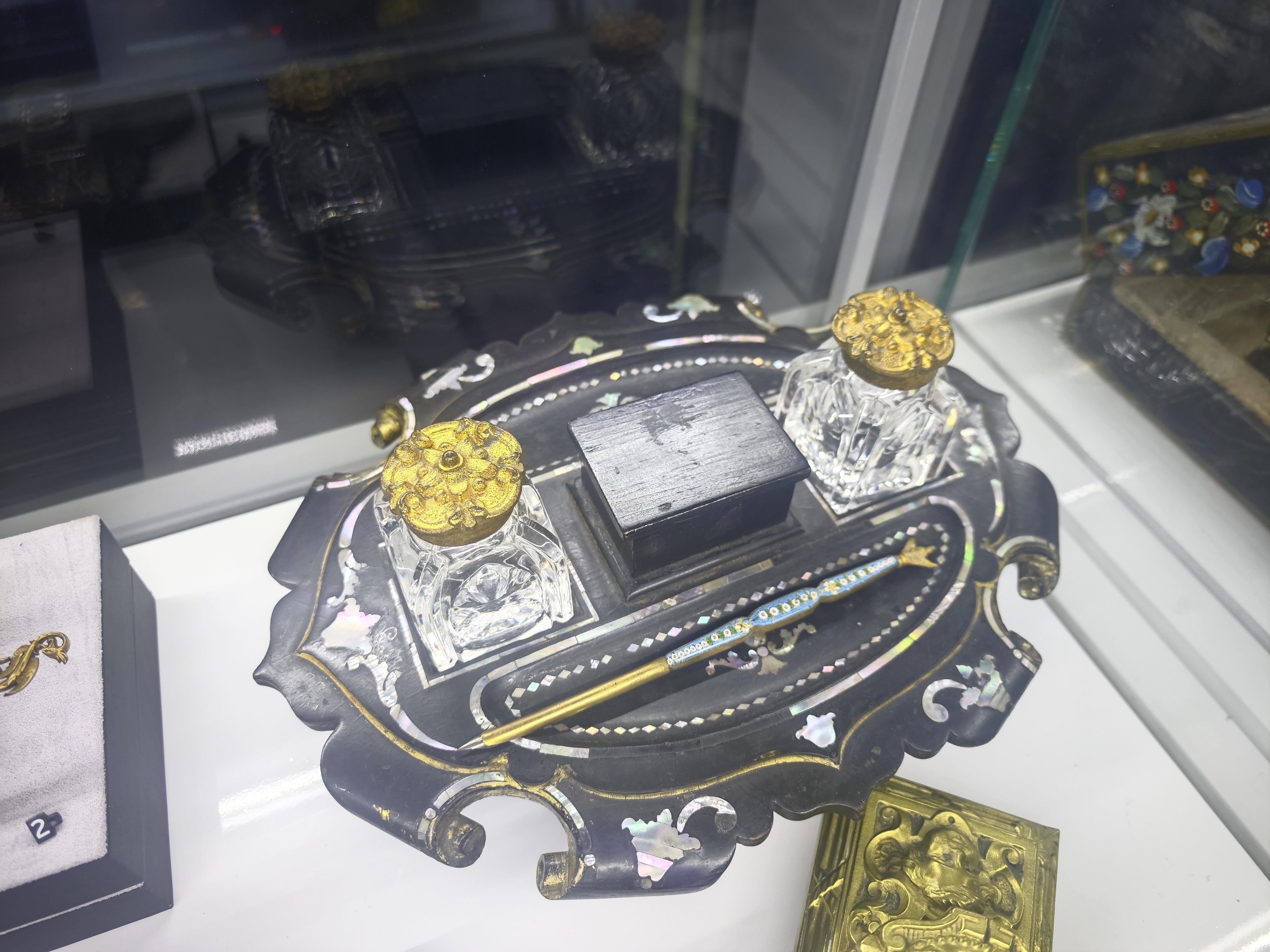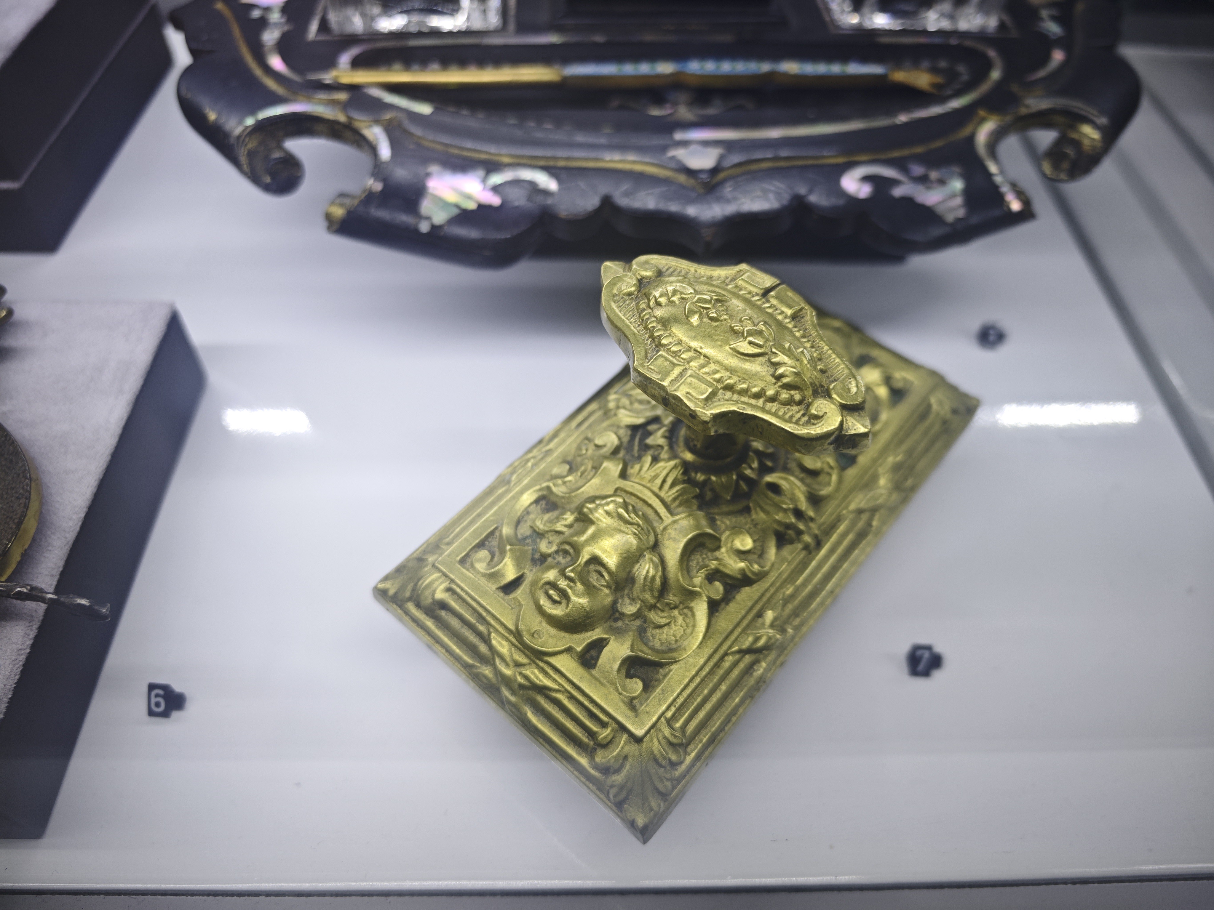 Экспонаты действительно мало похожи на утилитарные девайсы, а скорее являются предметами декоративно-прикладного искусства, которые отражают вкусы владельцев, вкусы эпох, ну и те или иные «обычаи». Так, например, заметив чернильницы из копыт животных, можно узнать, что подобные вещи — их называют трофейные — могли служить и как частная характеристика владельца в качестве хорошего охотника.