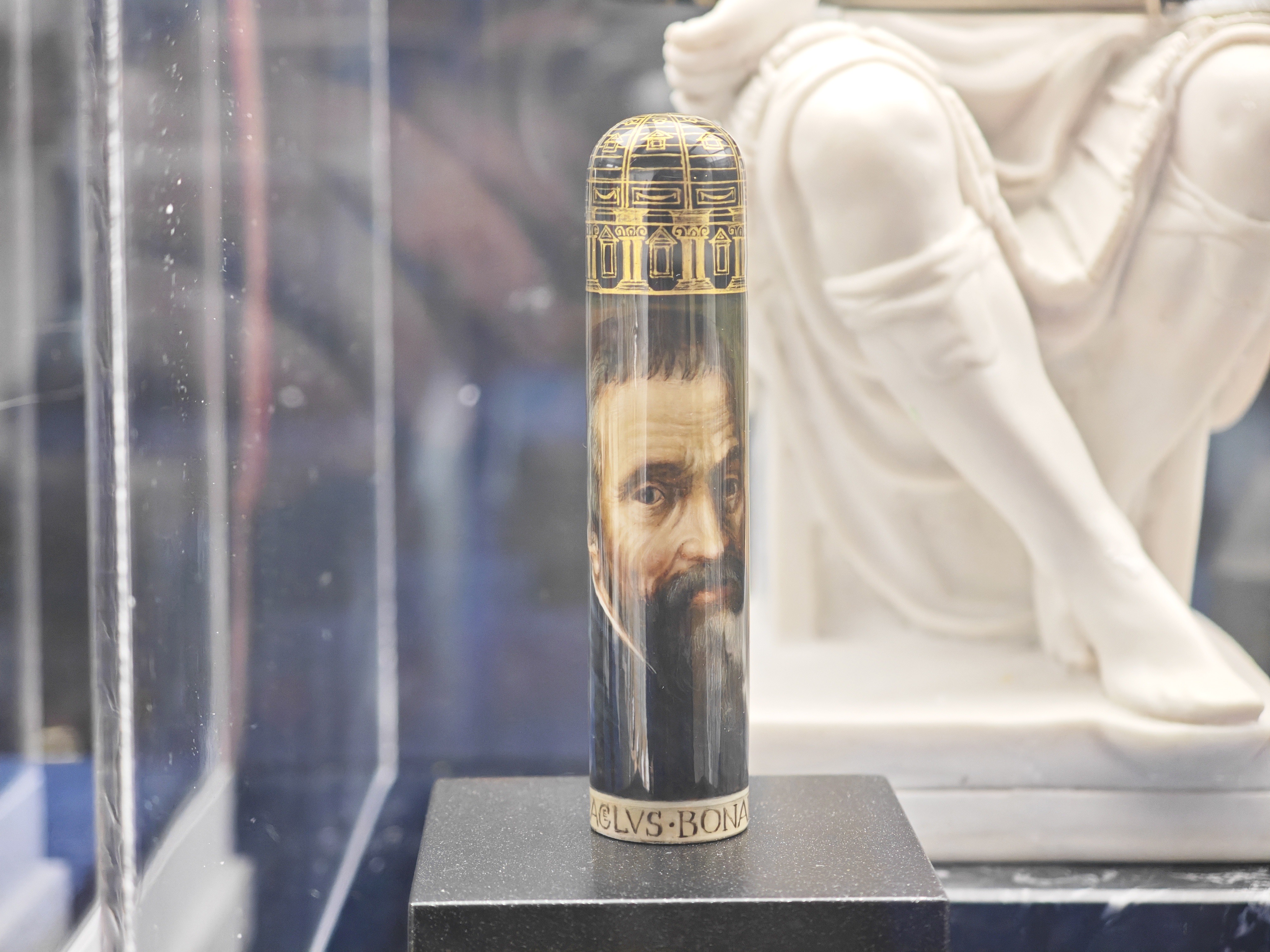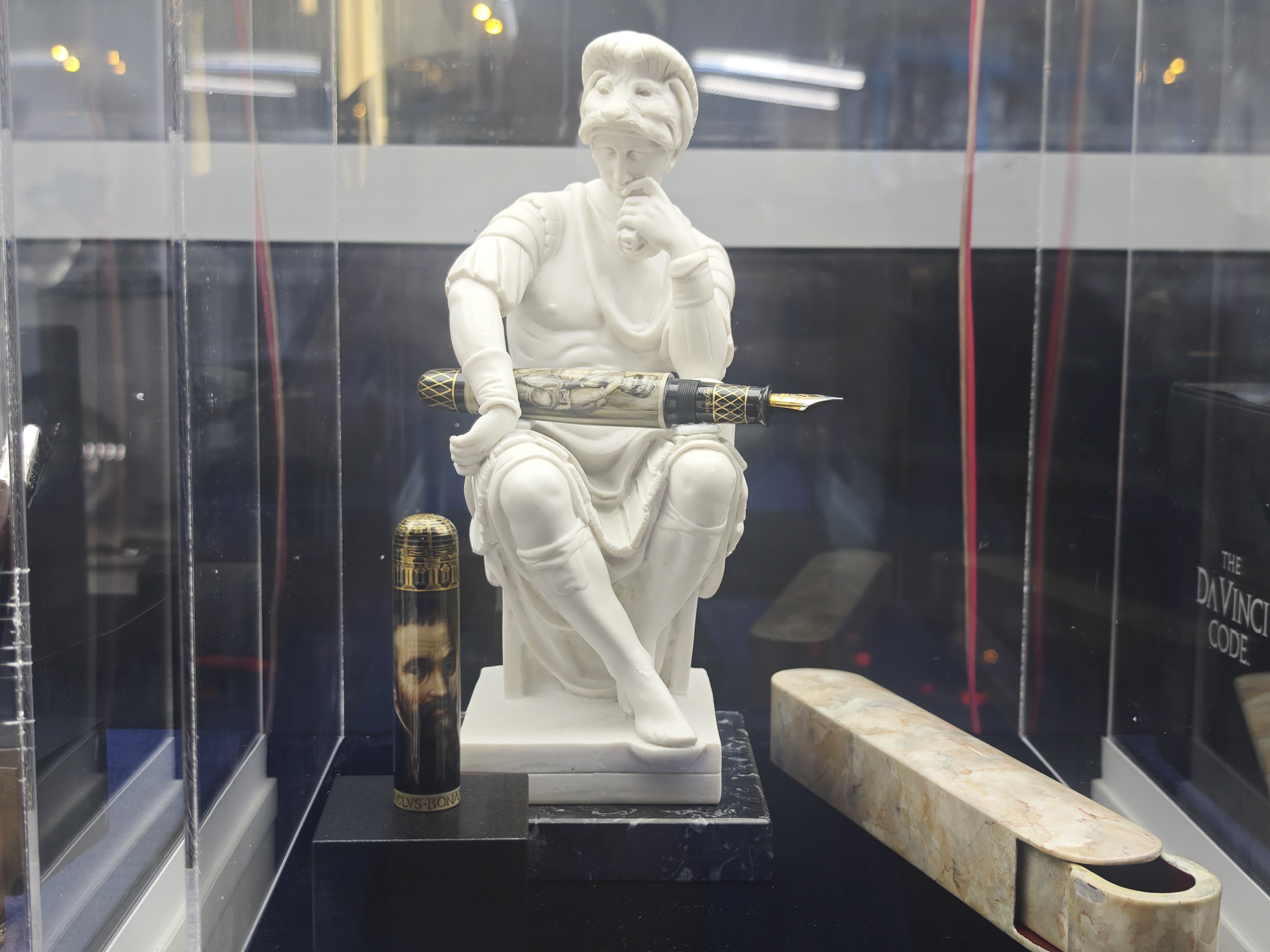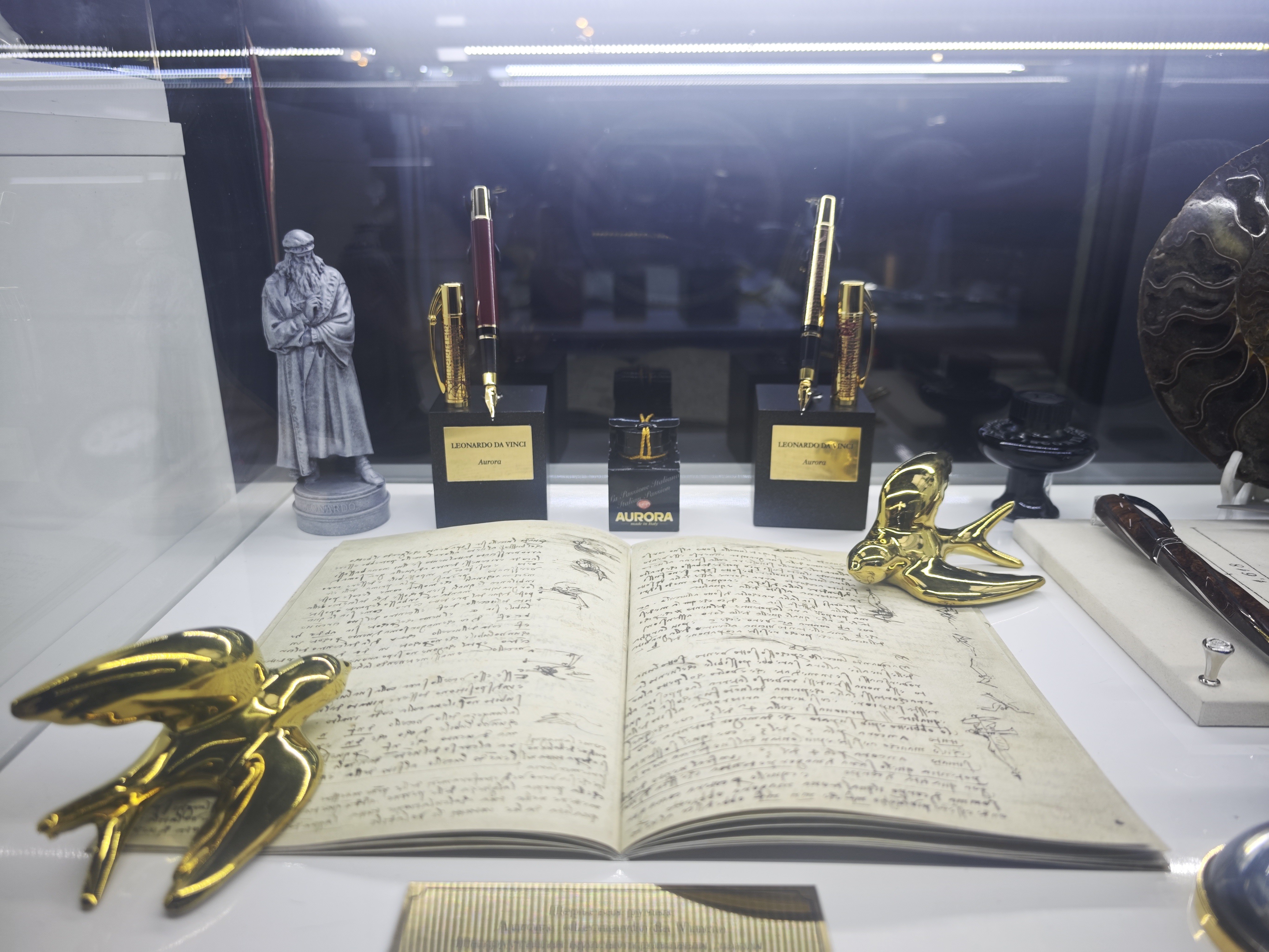 Здесь буквально его письмена, фрагменты почерка из легендарных кодексов, украшают колпачке ручек. Однокоренными совпадениями с письмом служат образцы расписанных вручную коллекционных ручек: