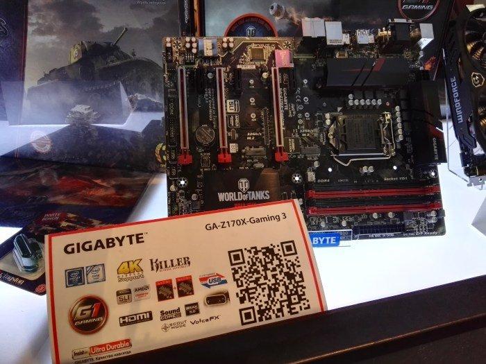 Gigabyte присутствовала на выставке как партнер Wargaming. В представленном ассортименте компании засветились различные материнские платы с символикой World of Tanks. К которым, разумеется, будут прилагаться коды на всякие внутриигровые бонусы.
