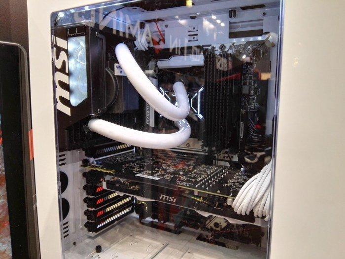 На стенде Alienware рассказывали о новом Alienware Area 51. Оригинального вида пирамидки, названные в честь знаменитой военной базы, оснащены процессорами Core i7 четвертого поколения и вмещают до трех Geforce GTX980 в режиме SLI.