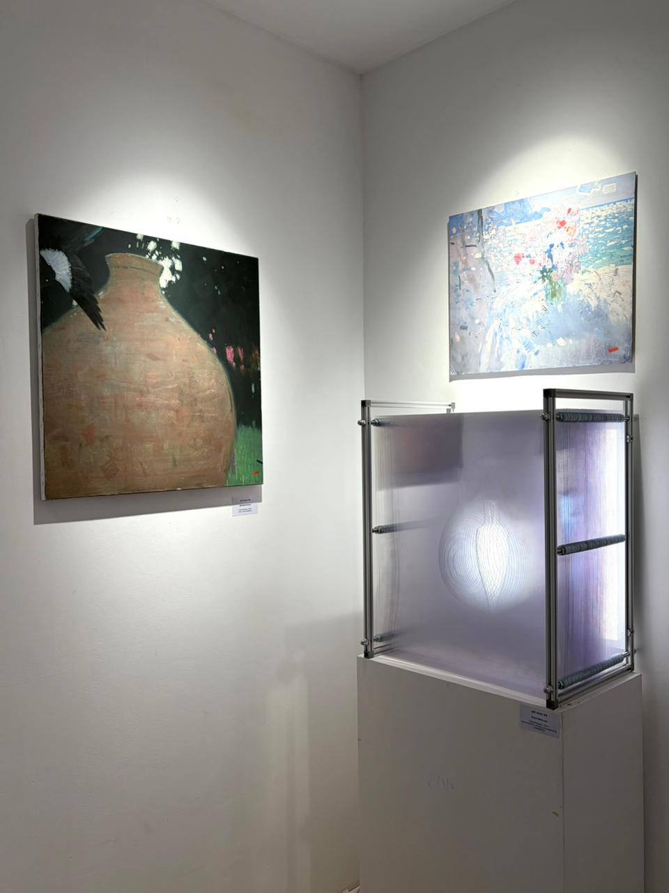 Картины Дугаржапова выставляются вместе со своеобразными инверсионными скульптурами Тишина, где объем, форма, смысл, если угодно, возникают из «пустоты».