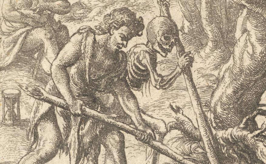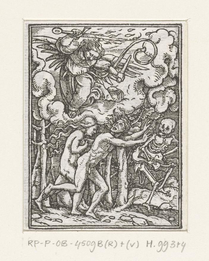 По всей видимости, одним из первых художников, кто стал использовать эту метафору, был Гольбейн, а за ним еще ряд немецких граверов, например, Генрих Альдегревер, последователь Гольбейна и Дюрера: