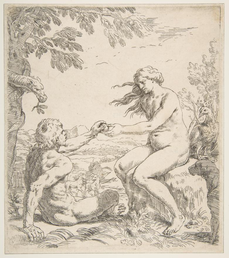 Вплоть до сцен Грехопадения подобных деталей лишены, как в немецкой графике, так и в итальянской:
