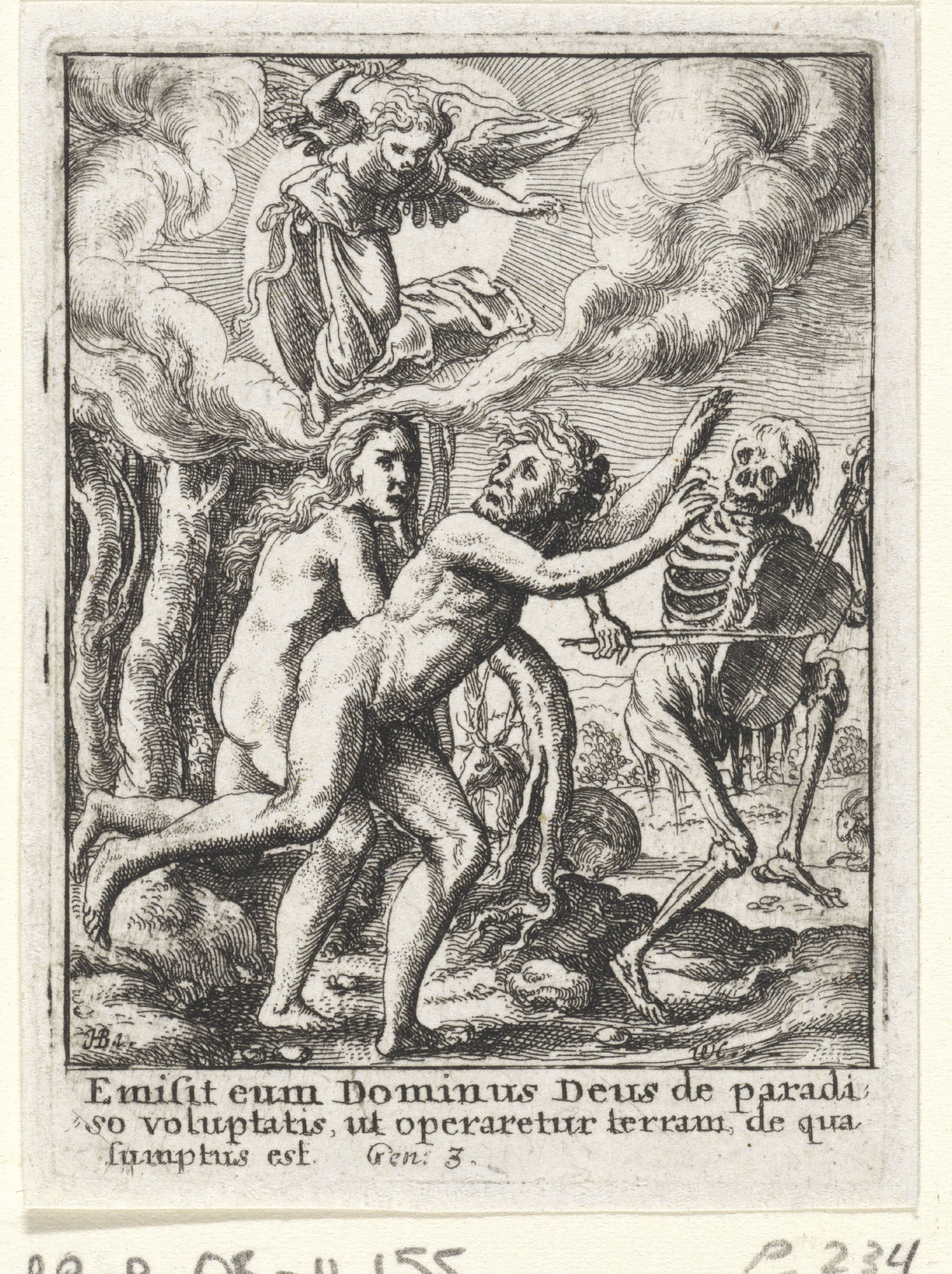 Судя по тенденции, по тому, на каких гравюрах мы видим эти часы, речь тут идет о символе человеческой жизни, и часы выступают, как указатель на то, что для отныне для Адама и Евы началась жизнь смертная, то есть конечная.