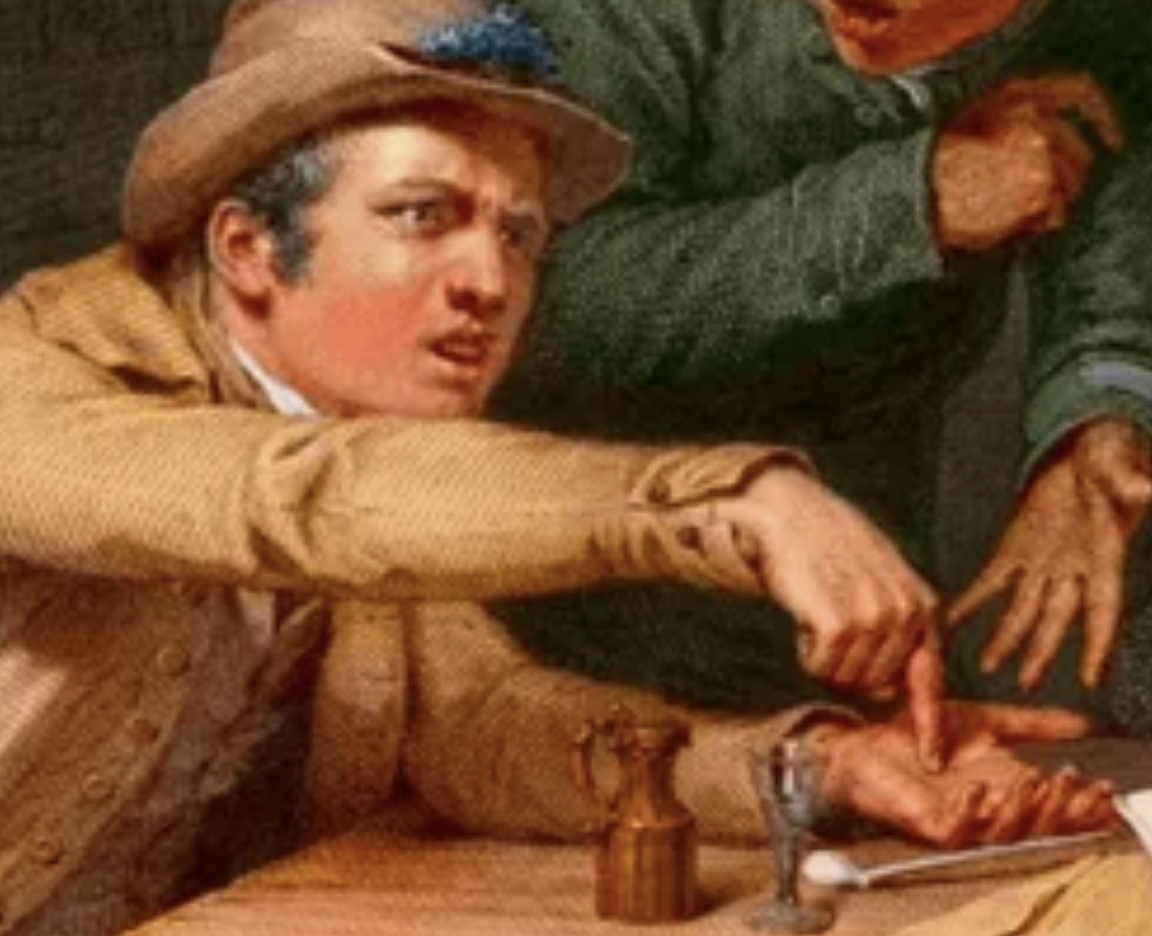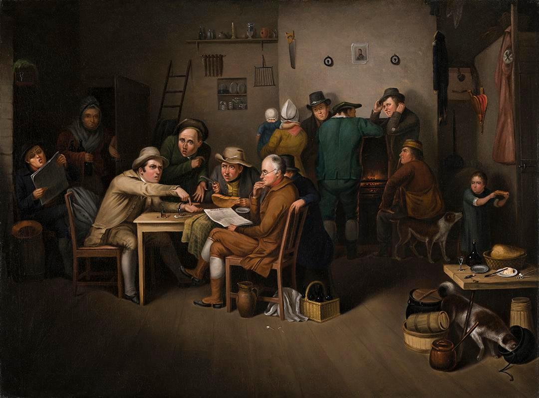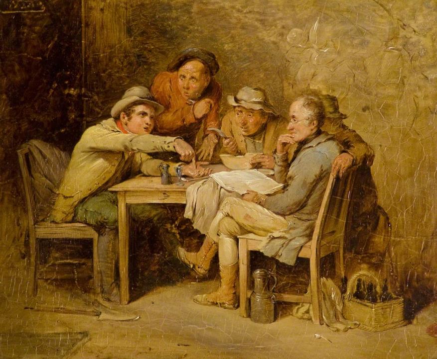 Автором этой работы исследователи предположительно называют шотландского художника Джона Уилки. Это интересная творческая семья, и отдельные жанровые композиции художника предположить авторство позволяют. Сам Джон Уилки был близок с художником Коллинзом, причем настолько, что стал крестным его сына, «подарив» тому в том числе имя (да, речь про романиста Уилки Колинза).
