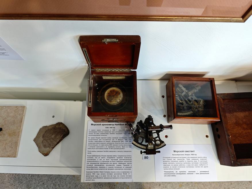 Если на первый взгляд, все это выглядит хаотично, то, присматриваясь, начинаешь находить логику. Лучше всего раскрыта тема морской хронометрии, где под портретом Джона Гаррисона возникает механический морской хронометр Hamilton.
