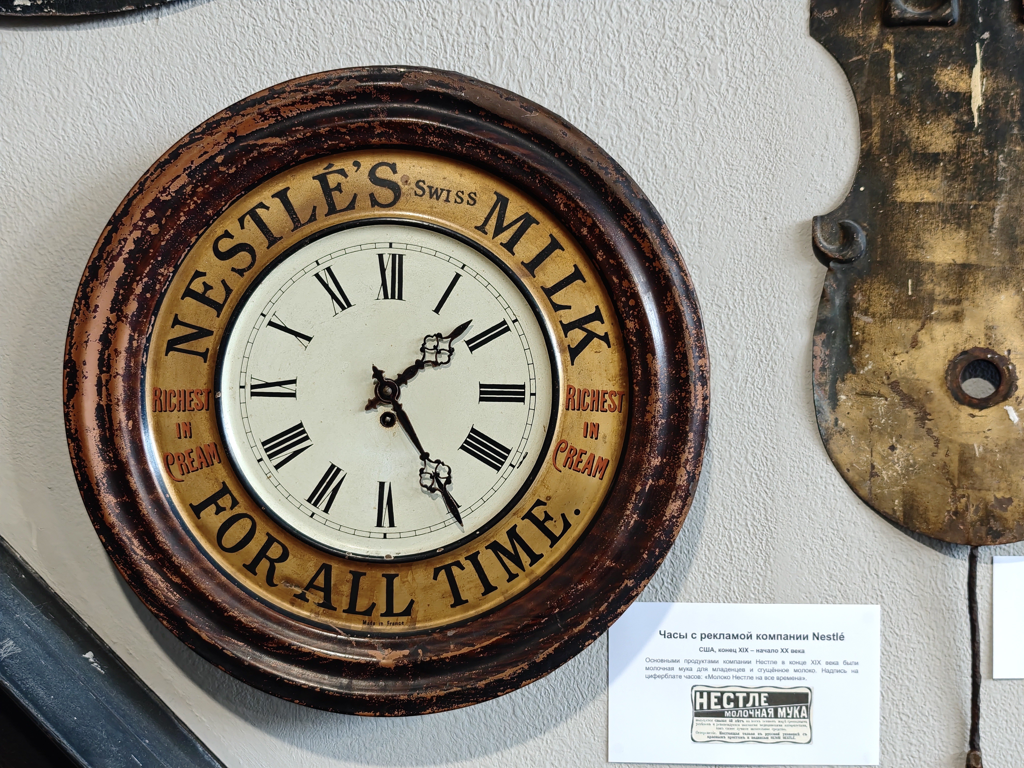 Также нельзя пройти мимо ранних «промо-часов», и хотя нынче явление сувенирных, брендовых часов не редкость, интересно увидеть, как такое было реализовано раньше на примере часов-рекламы «Нестле».